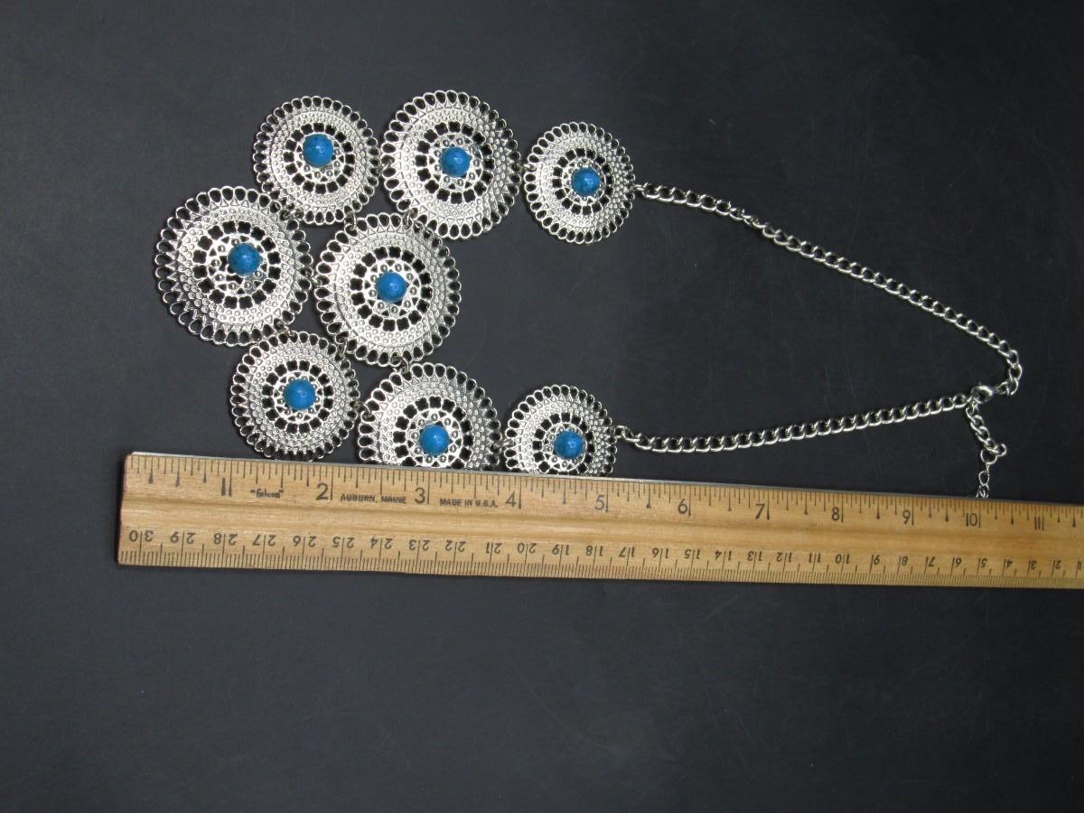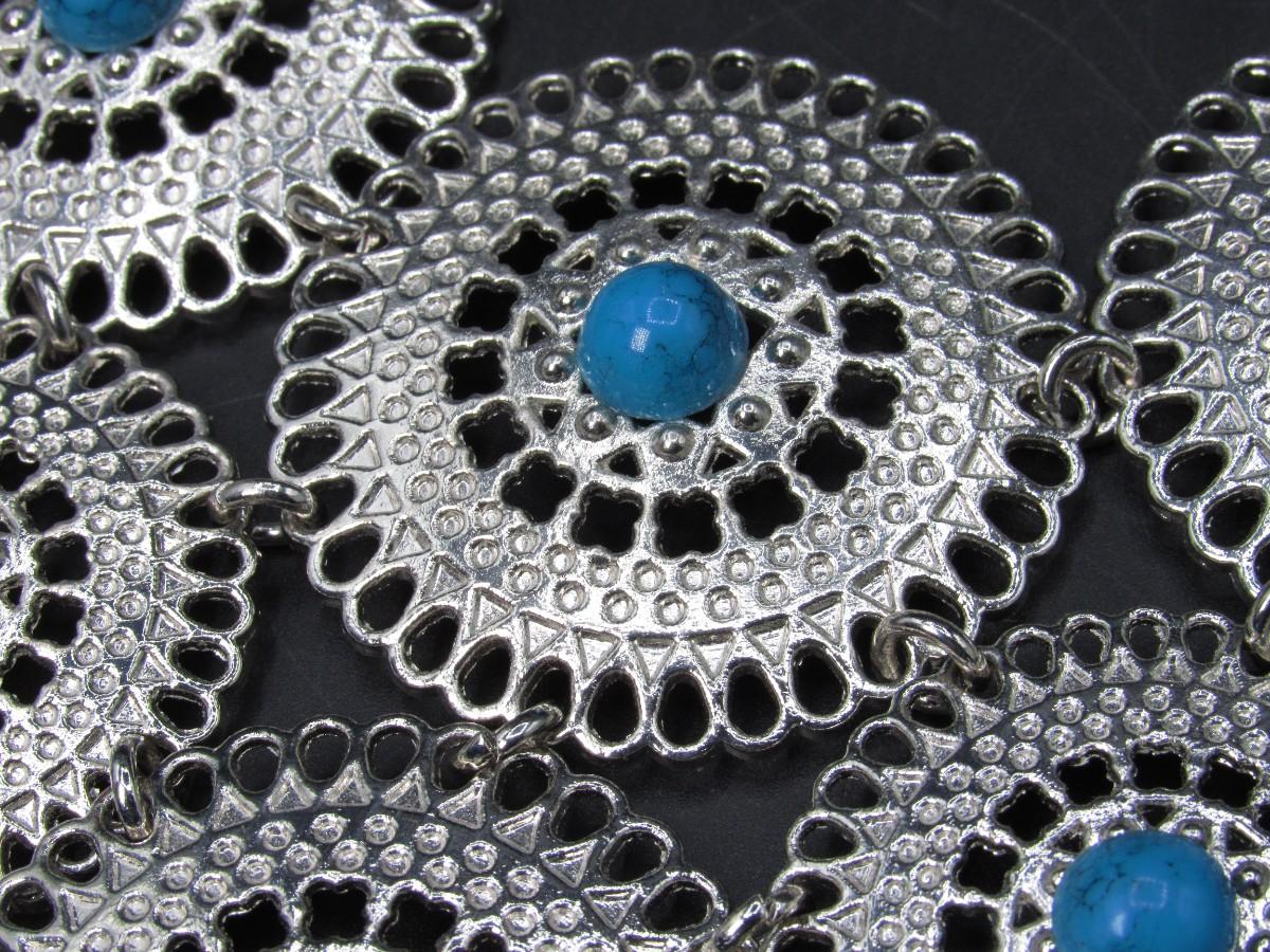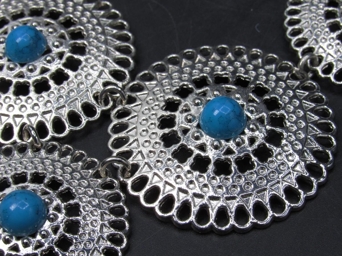 Fashionable Turquoise Rhinestones Circular Pattern Fashion Jewelry Piece Necklace