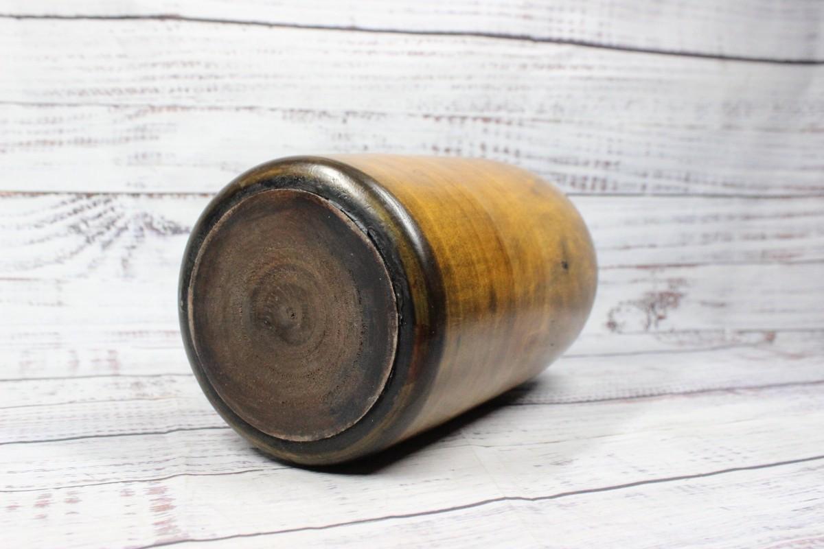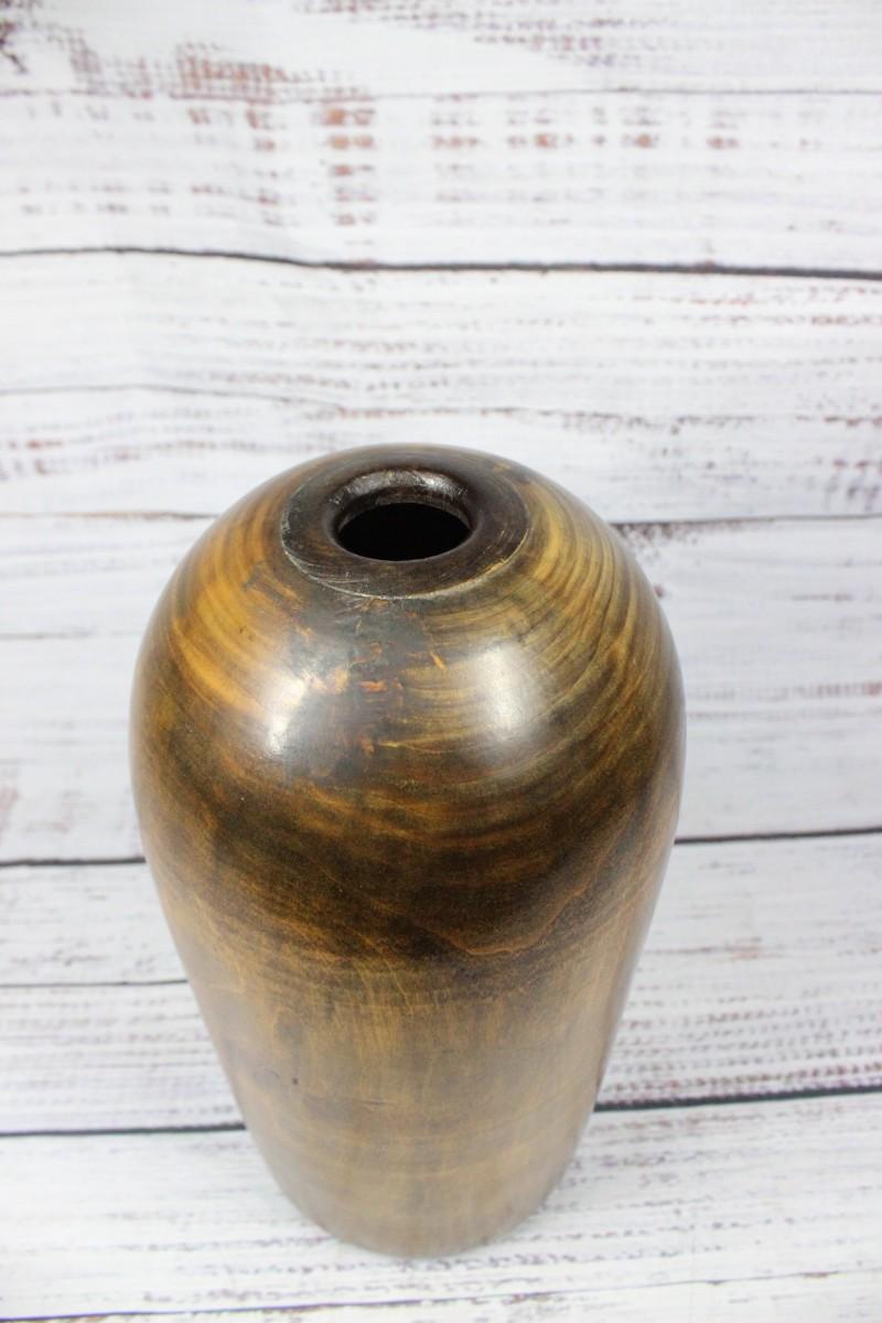 Large Carved Polished Wood Vase. About 12" size, very nice condition.