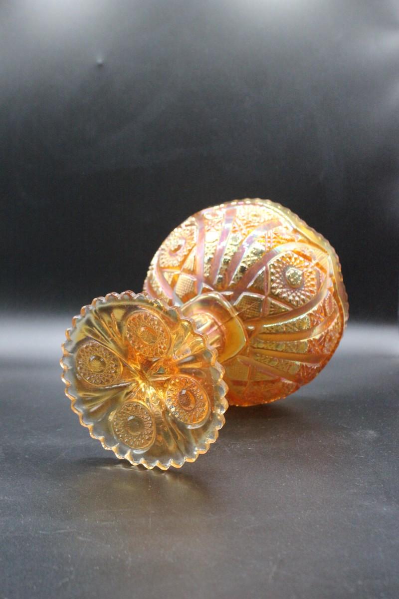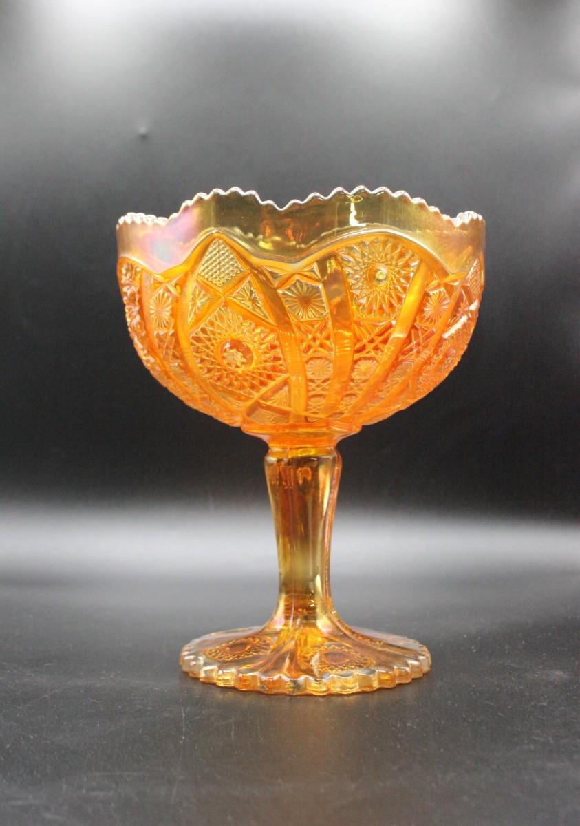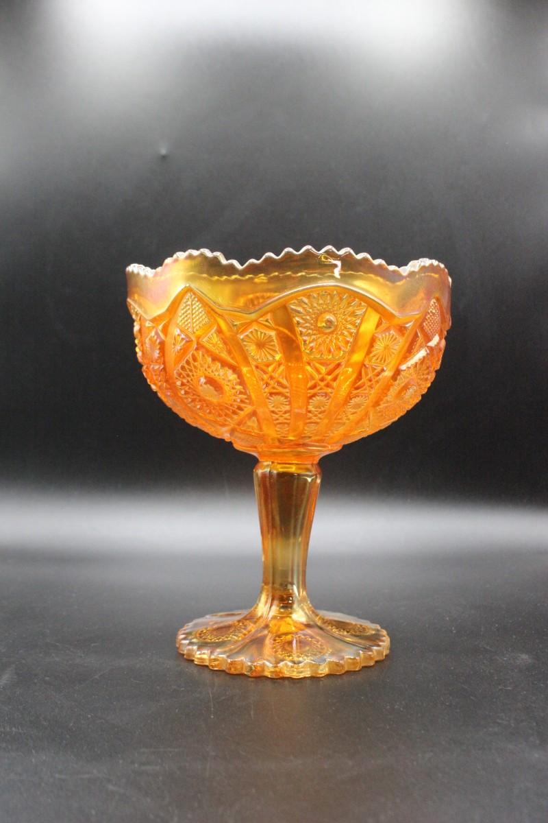 Vintage Fenton Carnival Glass Compote in Amber Marigold Orange