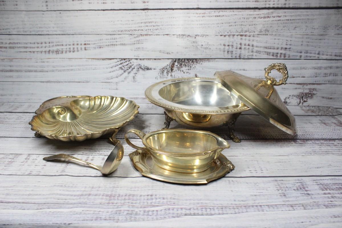 Vintage Silver Plated Dinnerware, there's no significant damage to the dinnerware and is in good condition. Check pictures for more details.