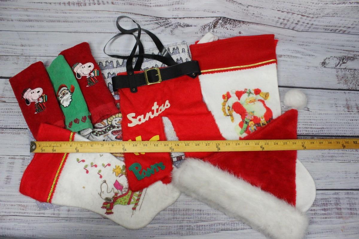 Assorted Christmas Snoopy Stocking Towel Lot, there's no significant damage to the material. Check pictures for more details and for sizing.