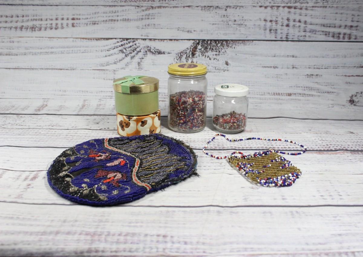 Bead Crafting and Bag Lot, comes with a couple of containers with various beads to be used for crafting. Also comes with two handcrafted bags made from the beads, check pictures for more details.