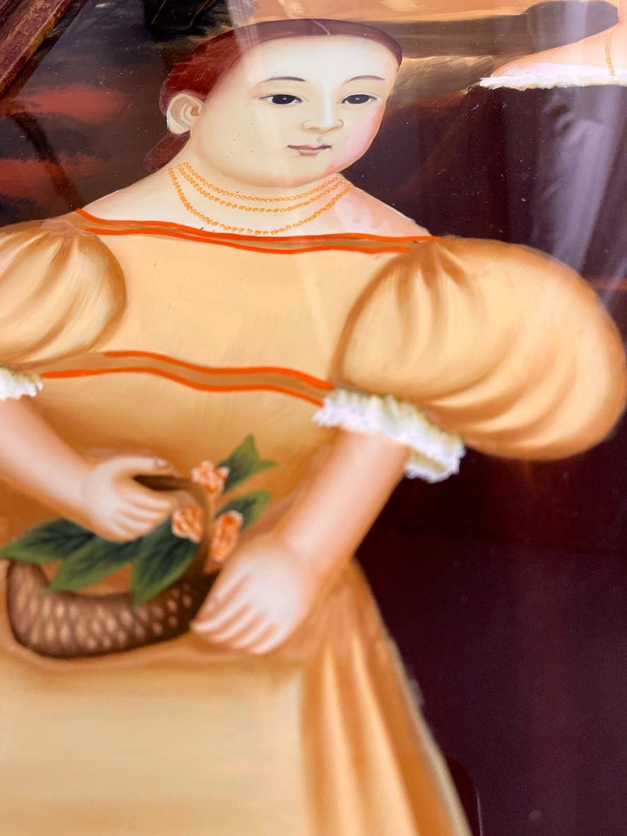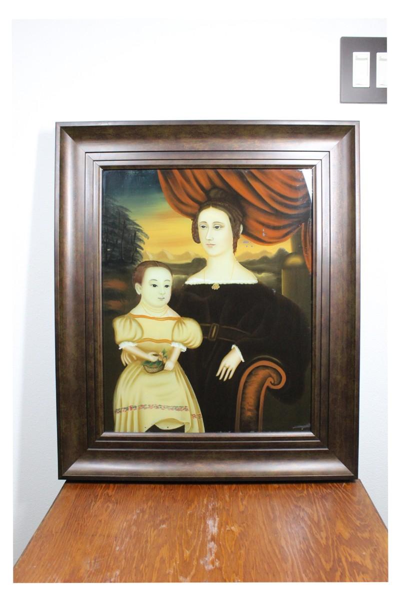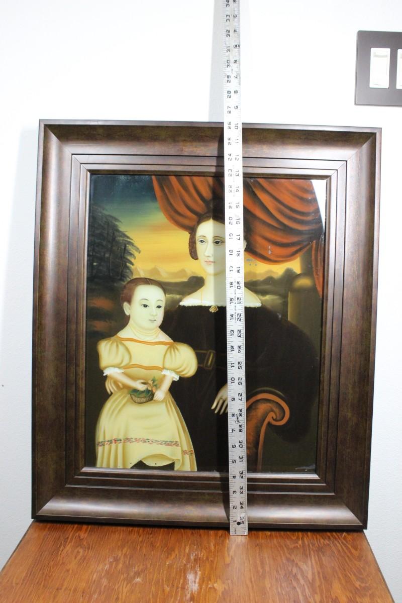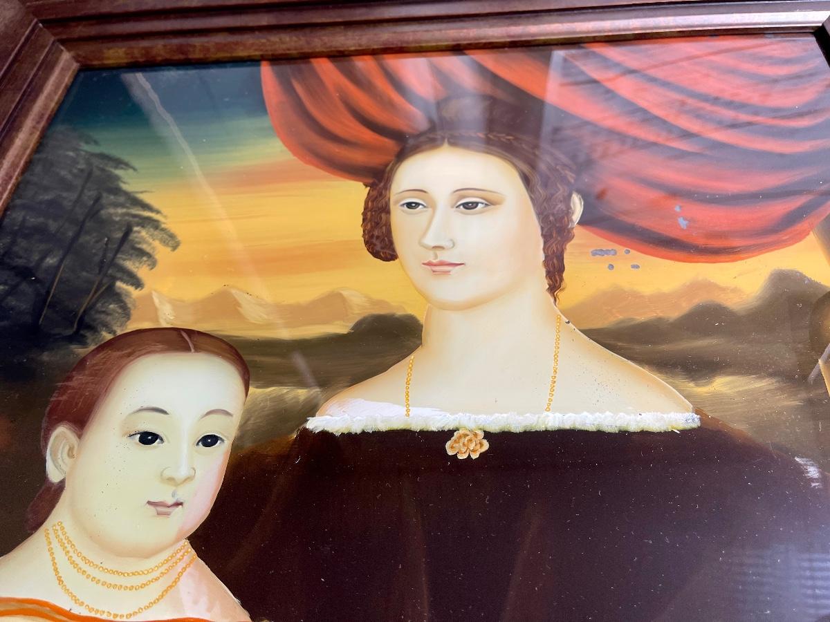 Vintage Reverse Hand Painted on Glass Reproduction of Mrs. Minor and Daughter by Orlando Hand Bears
