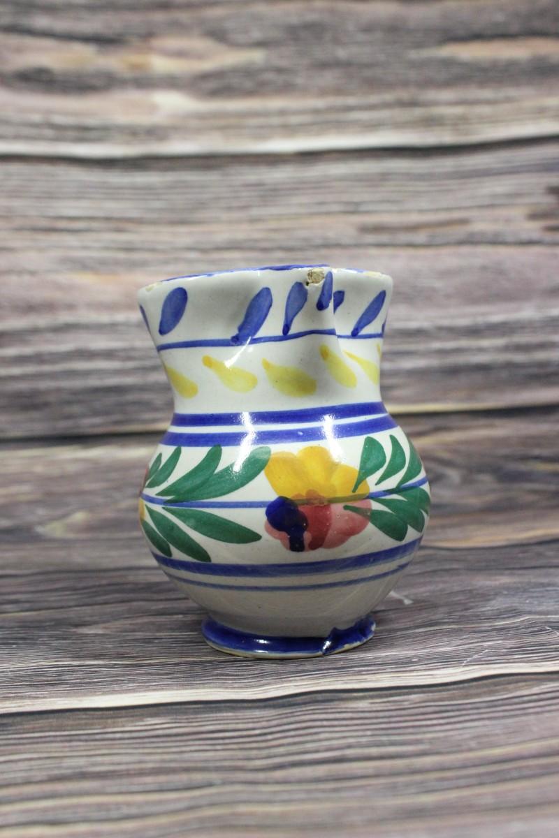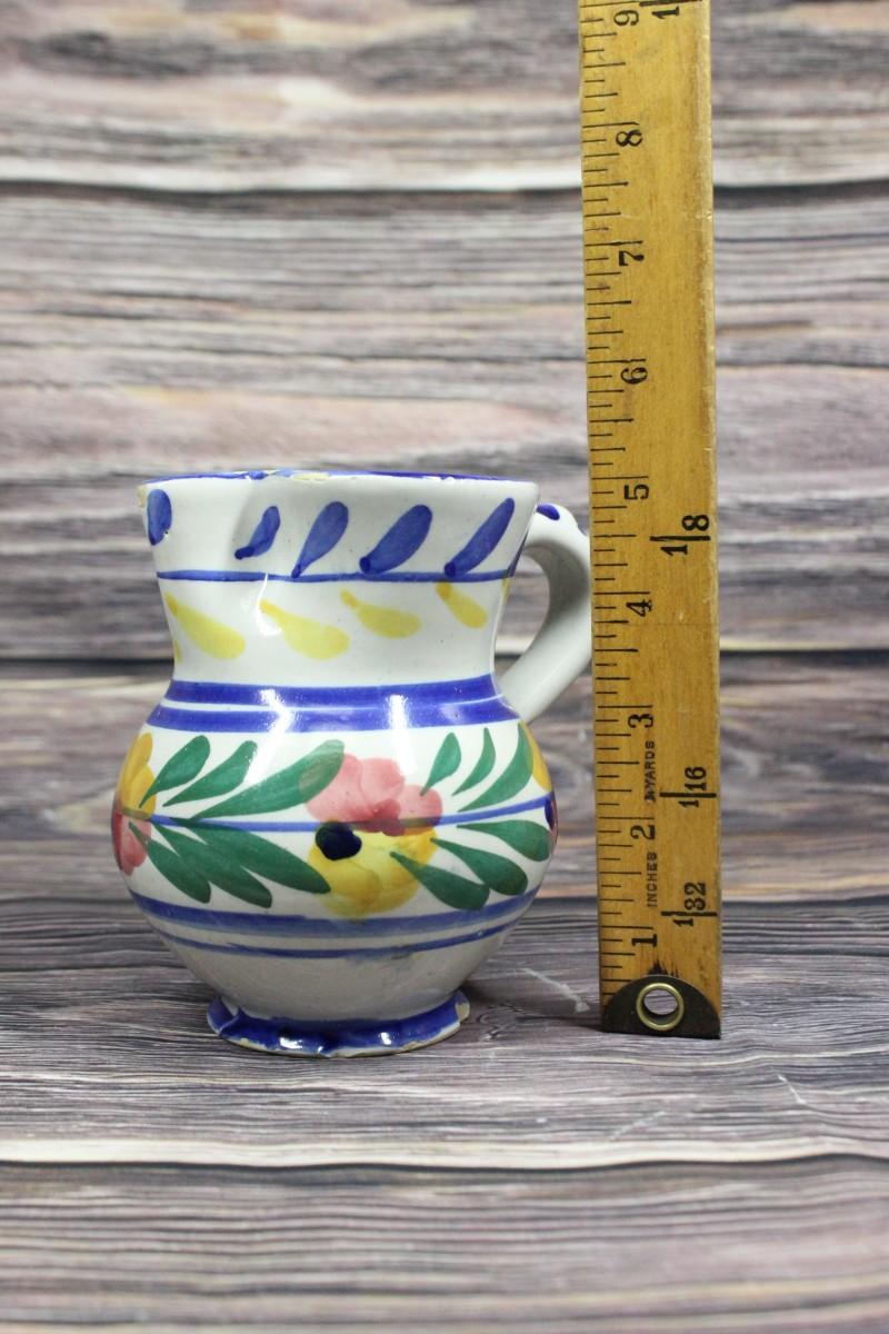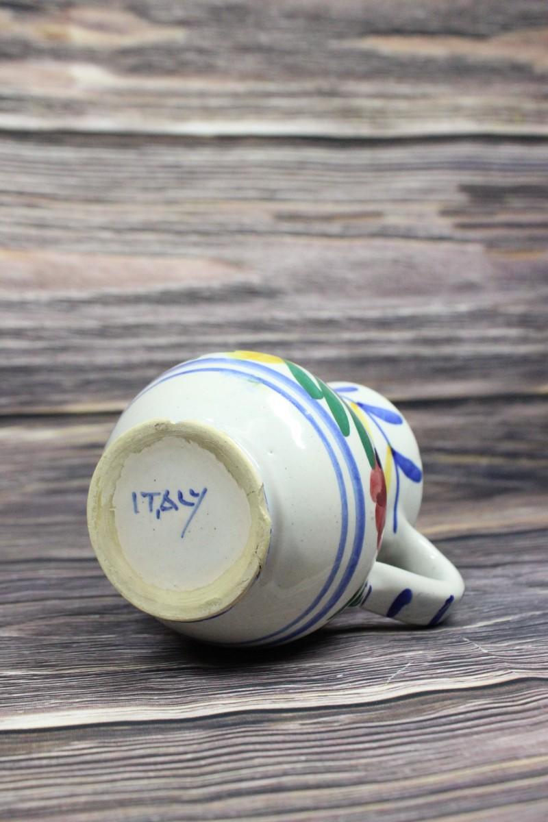 5" Vintage Made in Italy Floral Pitcher, there are some minor chips on the lip and on the base of the pitcher. Check pictures for more details and for sizing.