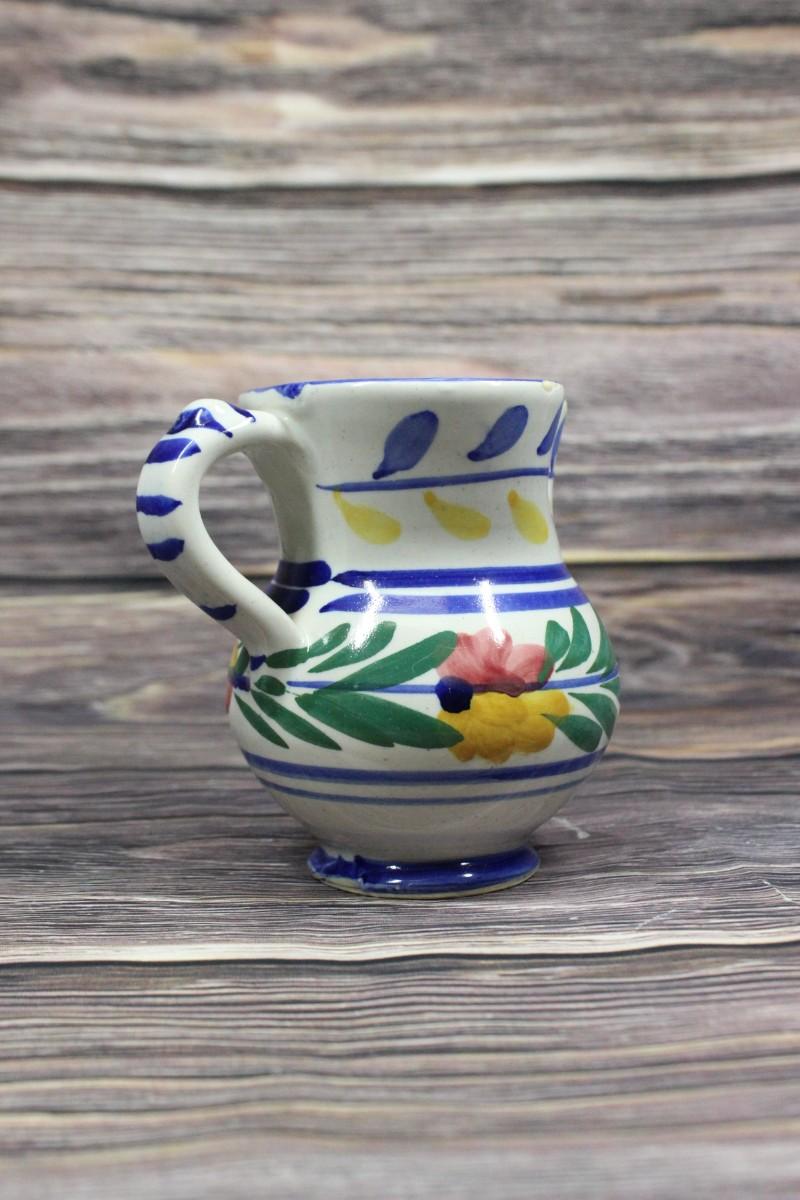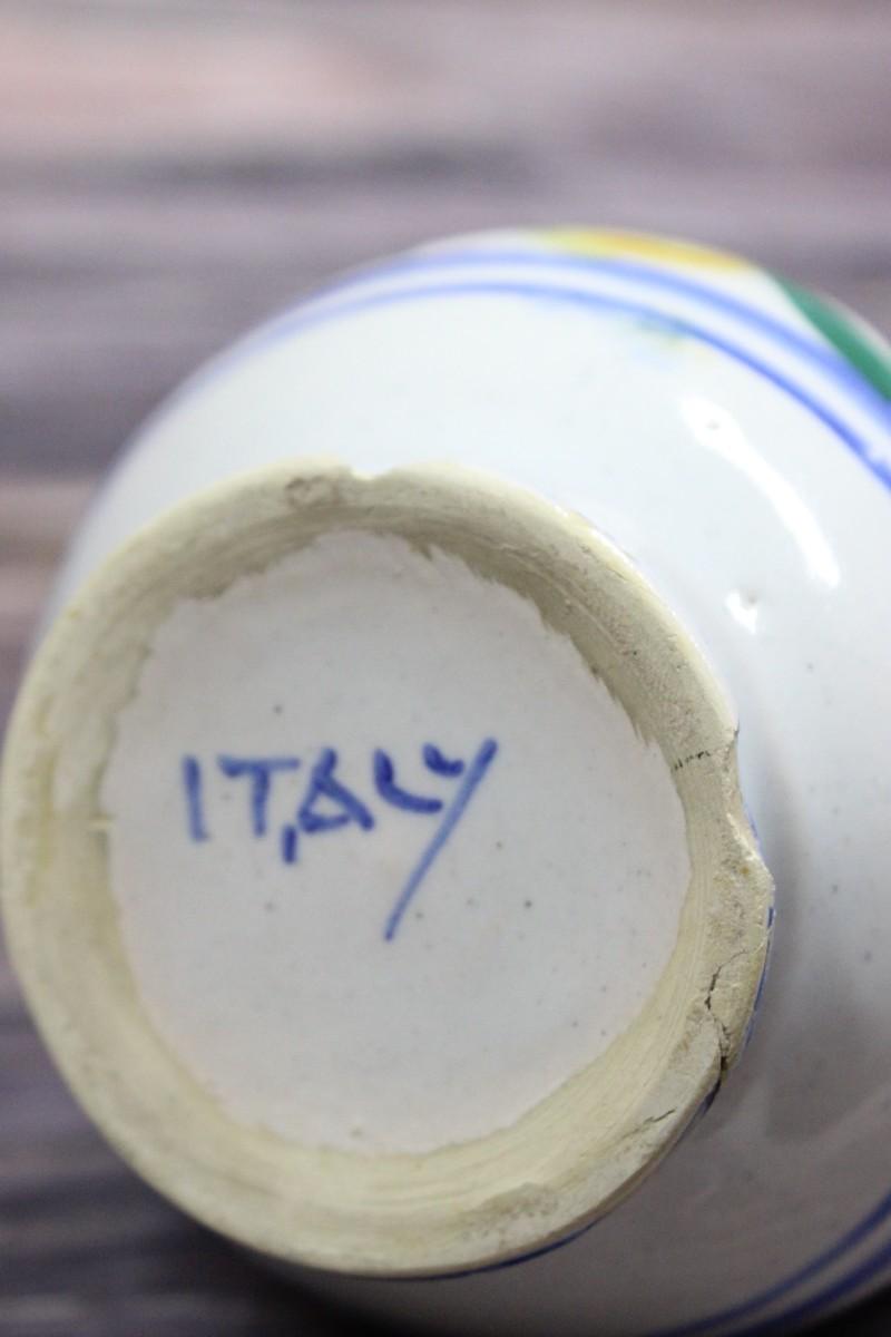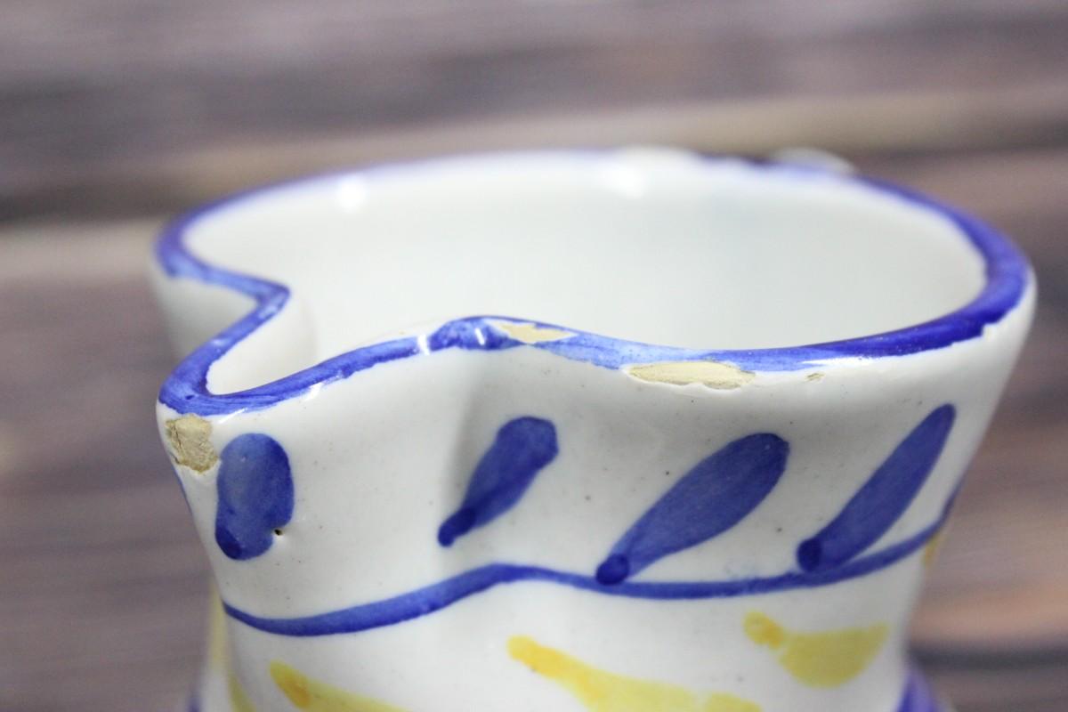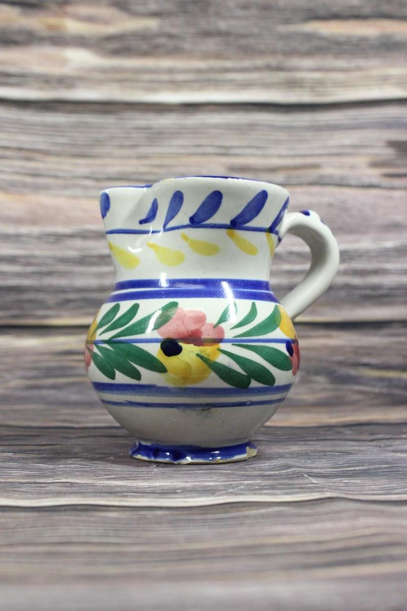 5" Vintage Made in Italy Floral Pitcher, there are some minor chips on the lip and on the base of the pitcher. Check pictures for more details and for sizing.