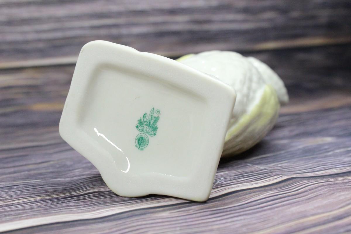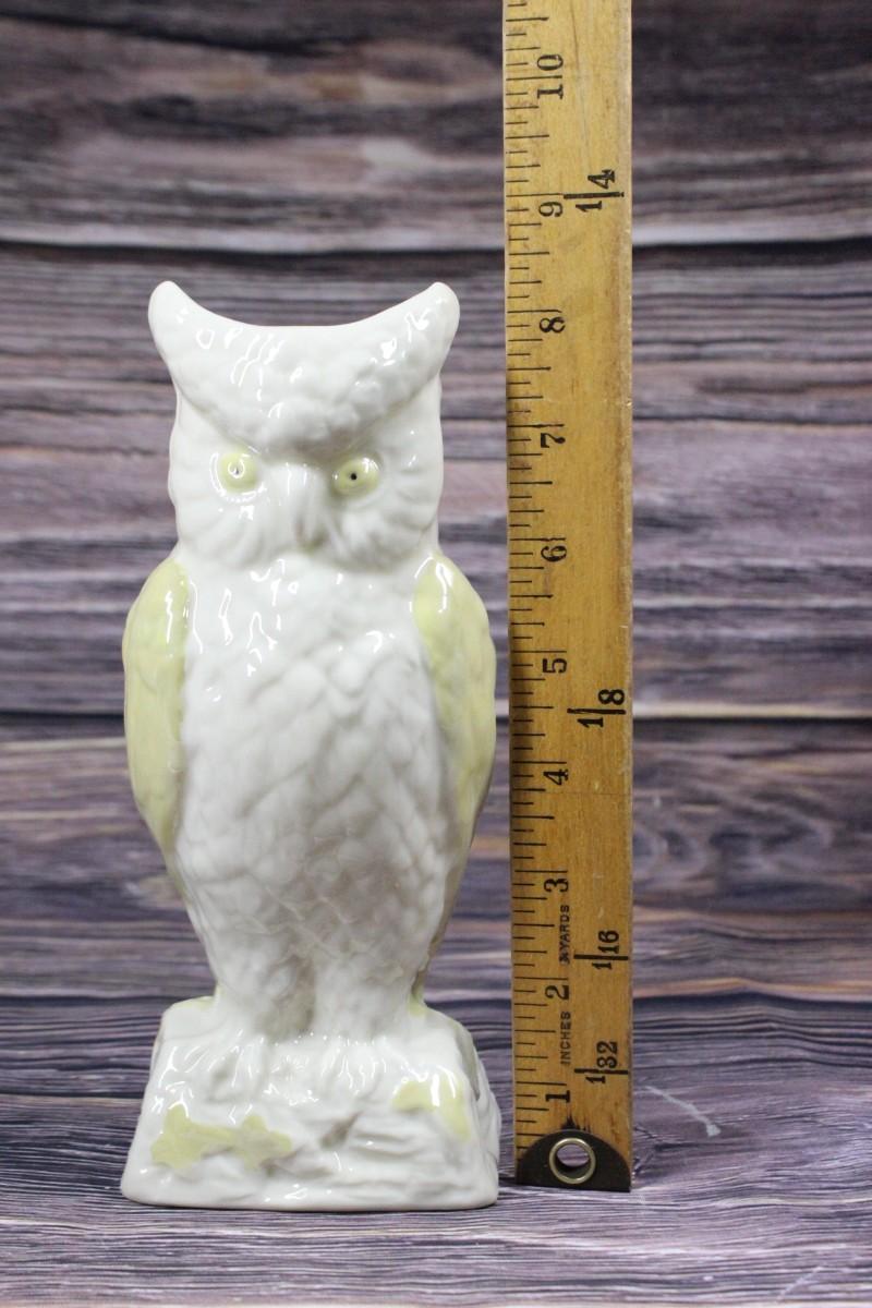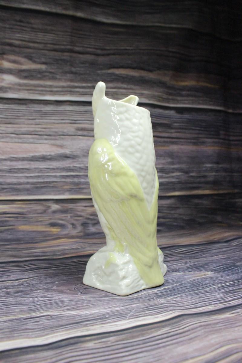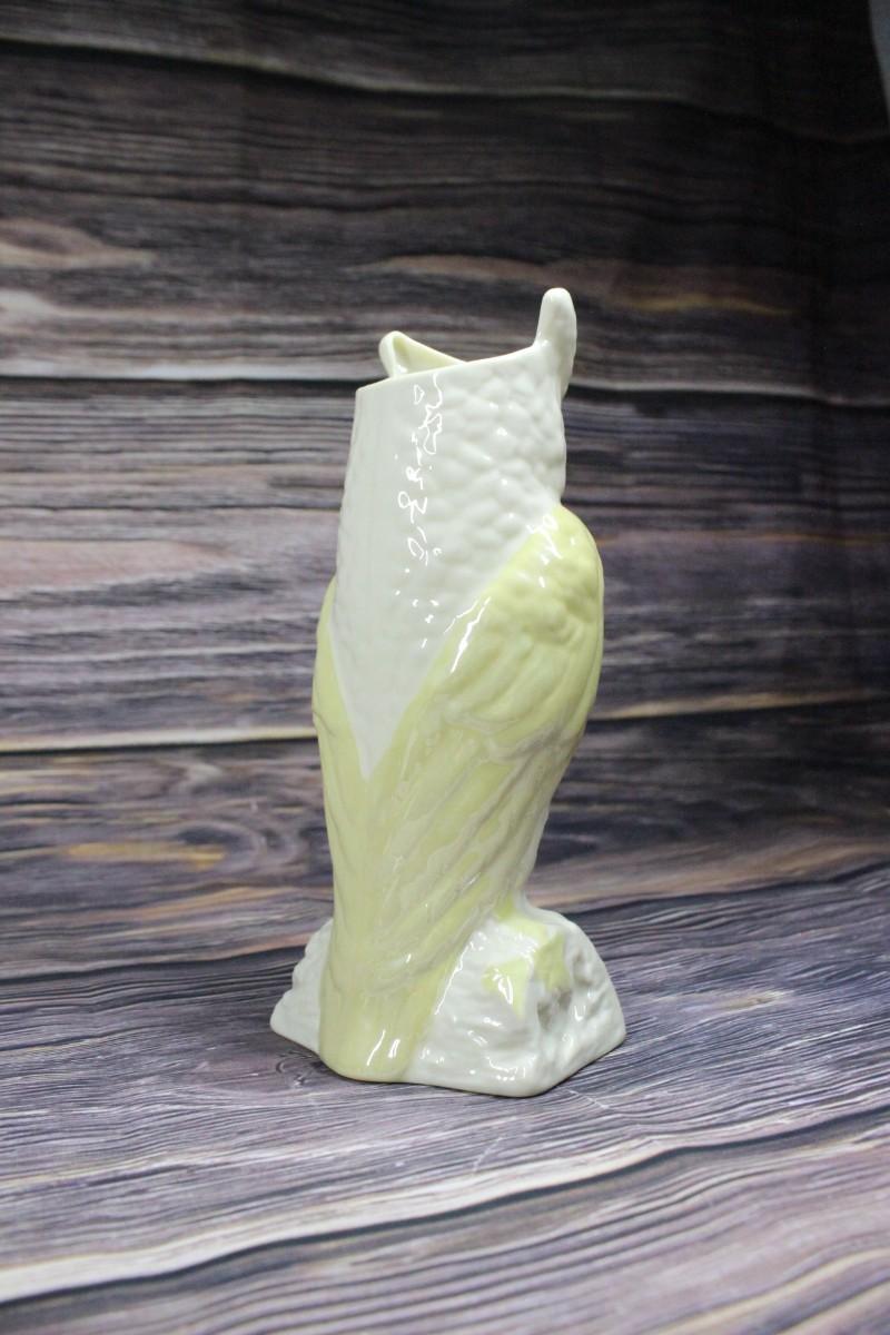 Vintage Belleek Ireland Yellow Ivory Ceramic Owl Vase
