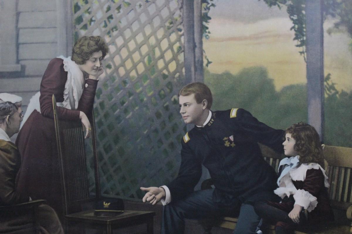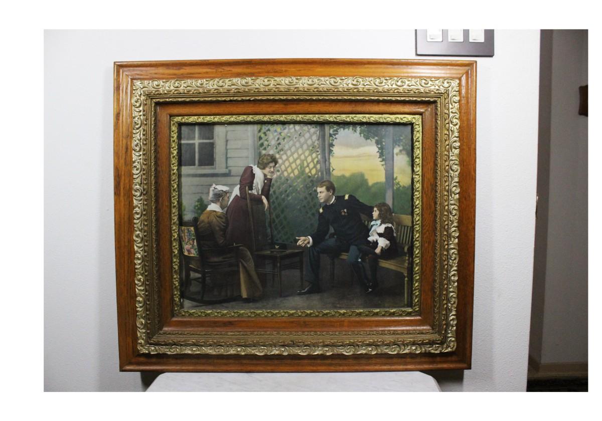 Vintage Framed Colorized Rough Rider and Family Civil War Era Print