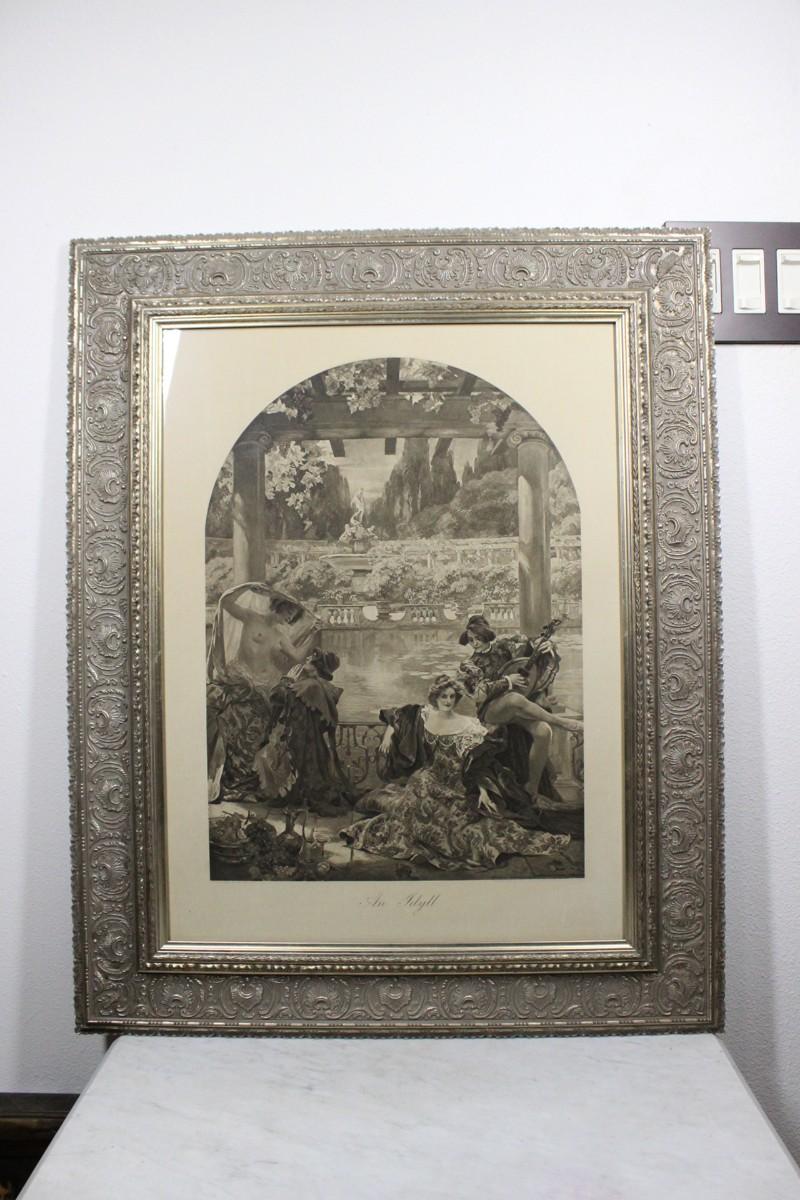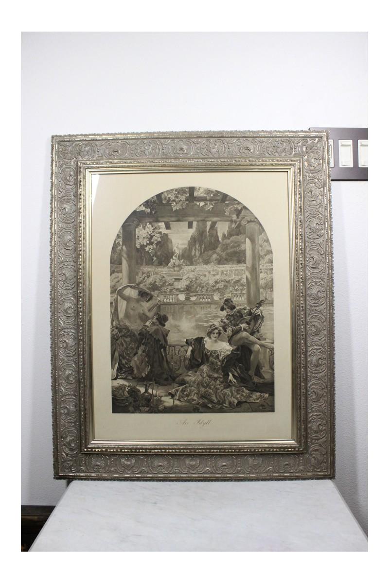 Vintage Framed Nude Nymphs at Fountain of Love Victorian Antique Print