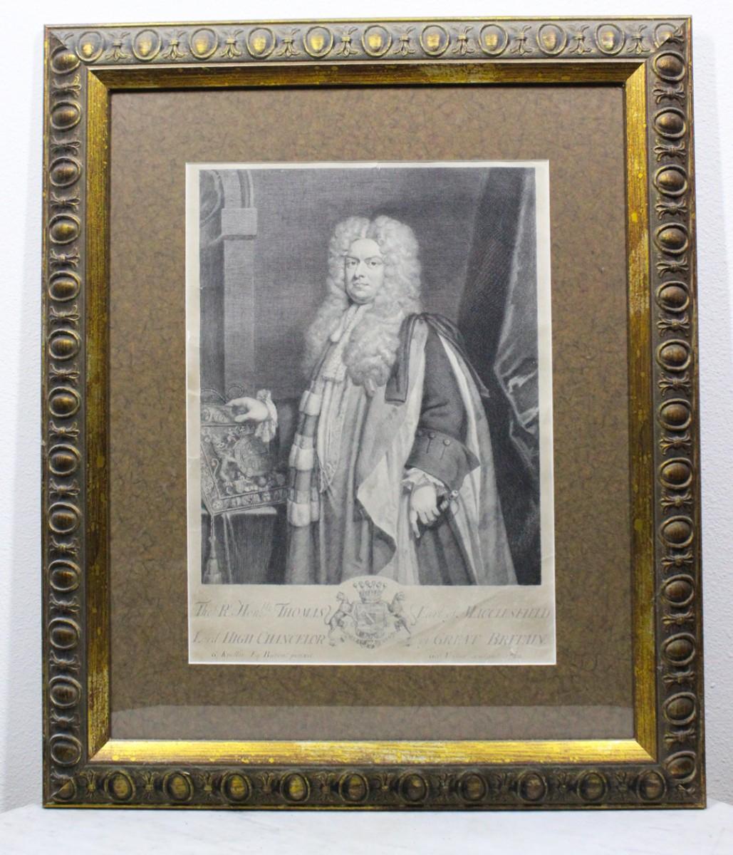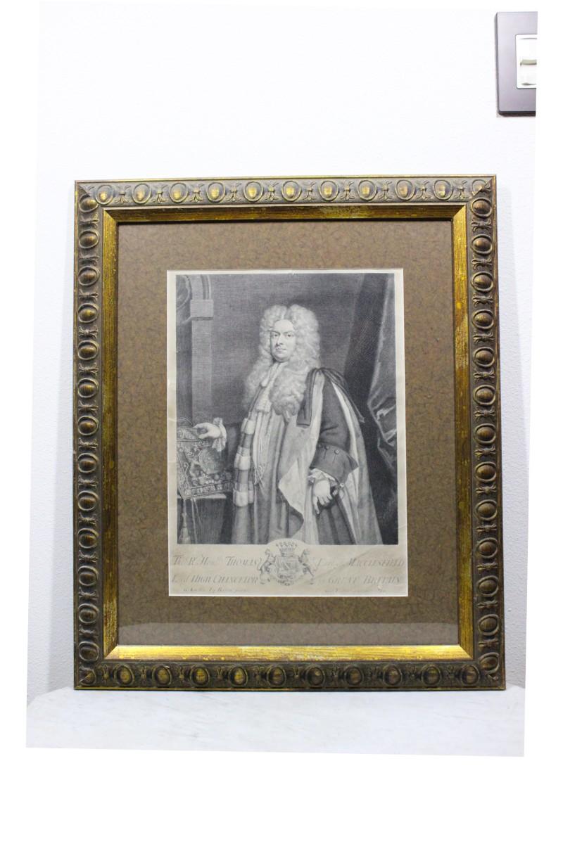 Vintage Framed Portrait Print of Thomas Parker 1st Earl of Macclesfield
