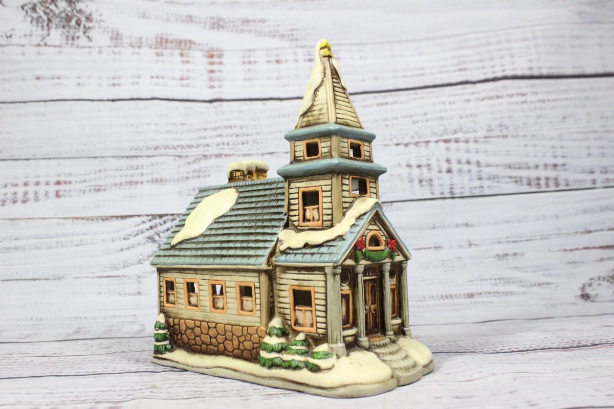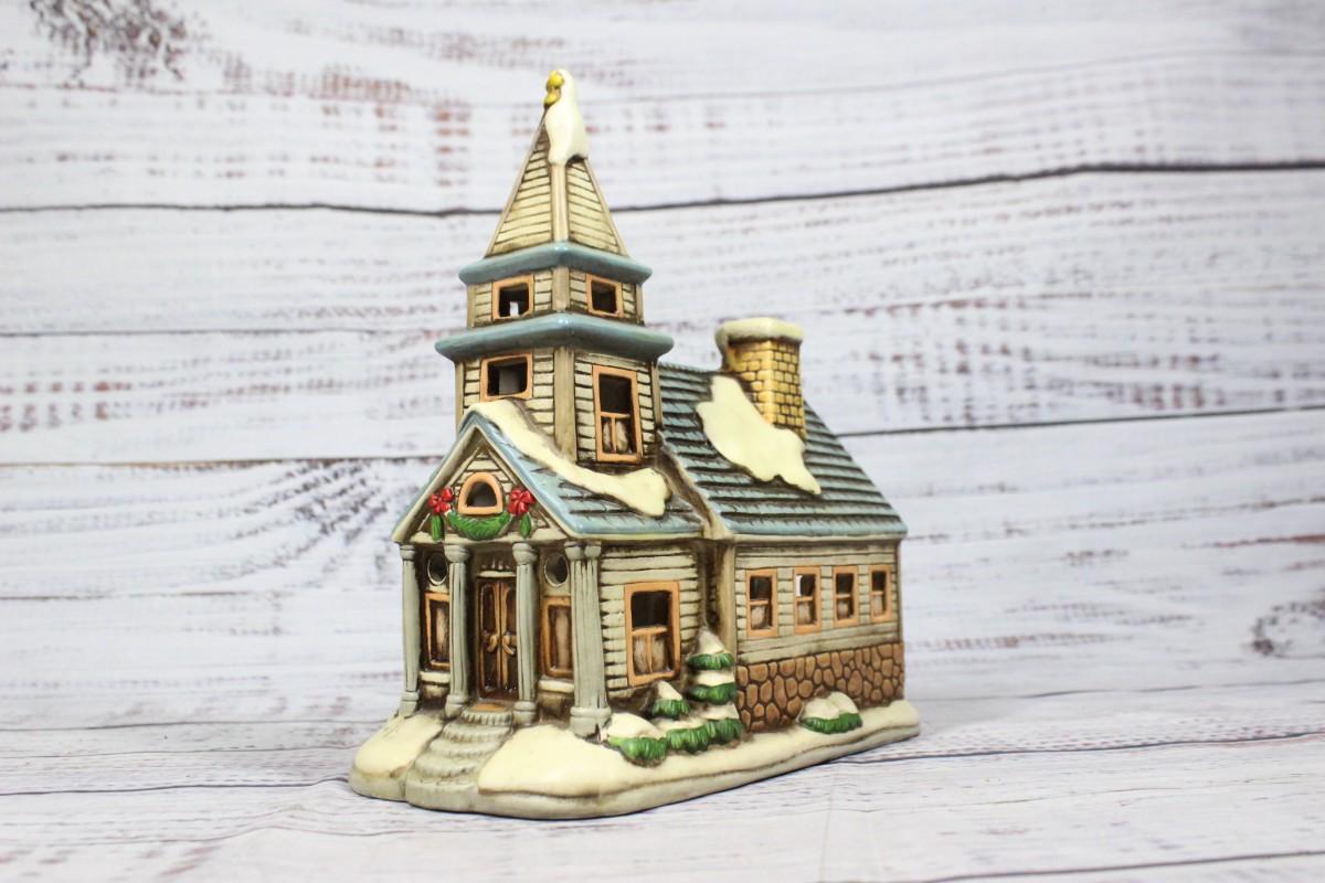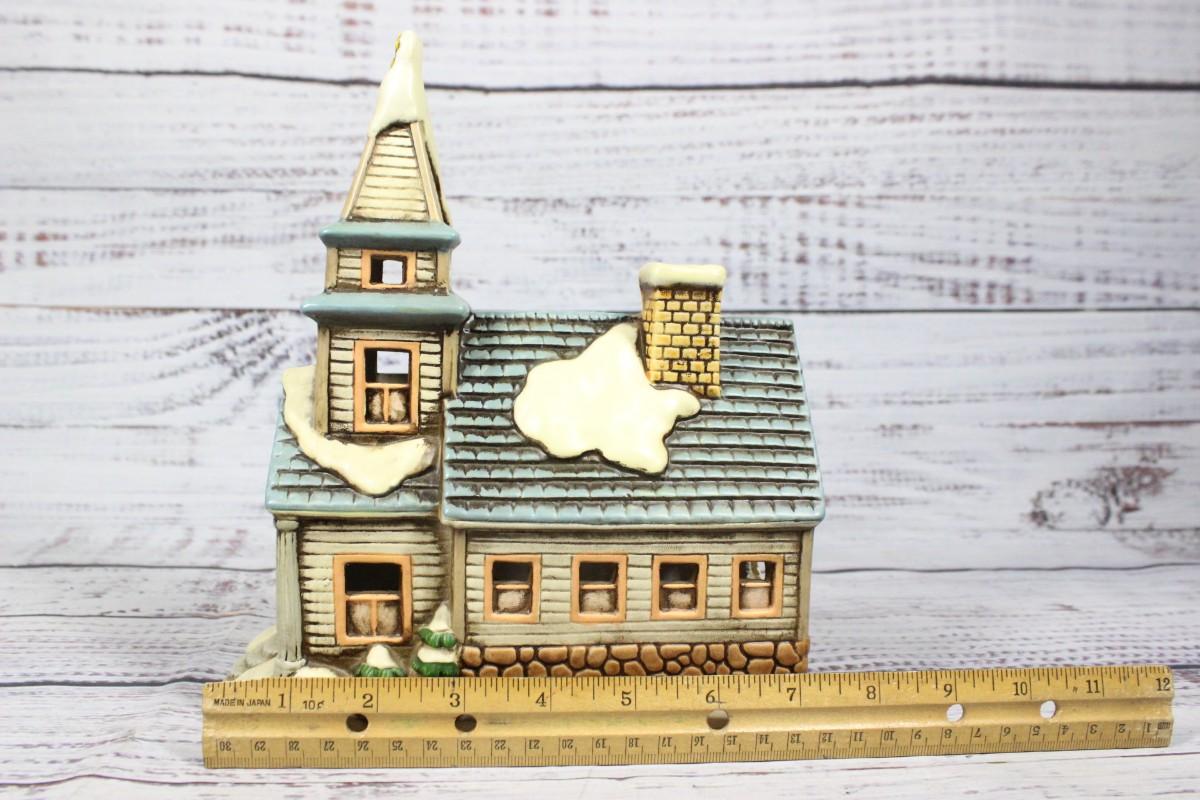 Vintage Lefton China Hand Painted Christmas Church Model, there's no cracks or chips to the piece and is in good condition. Check pictures for more details and for sizing.