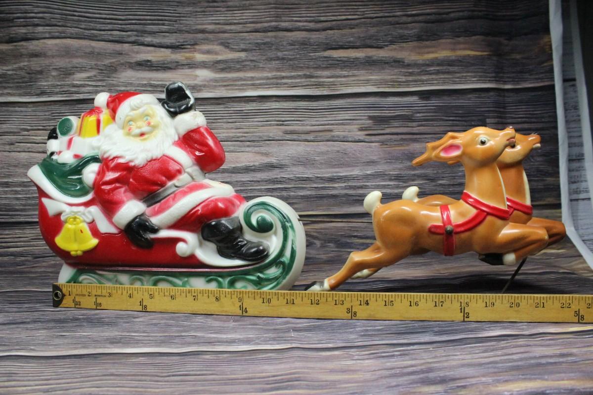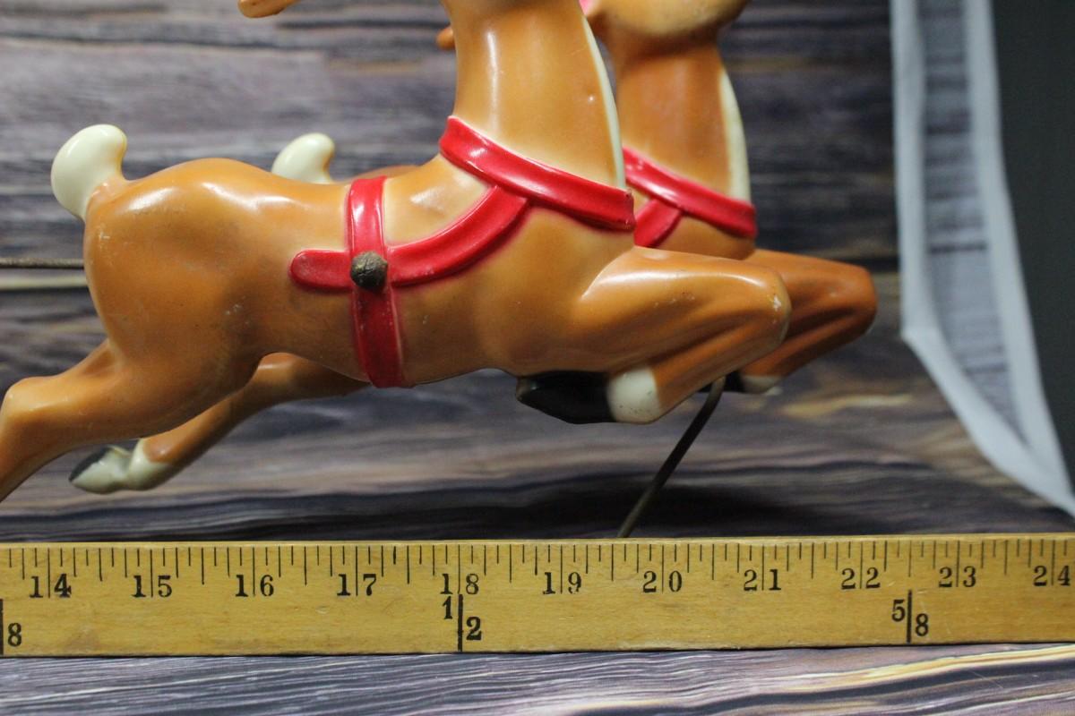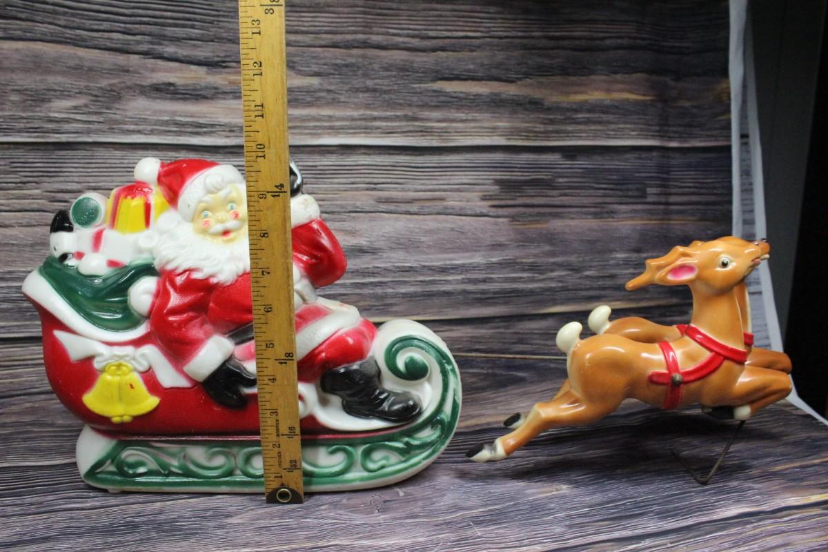 Vintage Empire Plastics Corp Santa and Reindeer Light Up Outdoor Decoration, there's no significant damage to the decoration and is in good vintage condition. Check pictures for more details and for sizing. Has not been tested.
