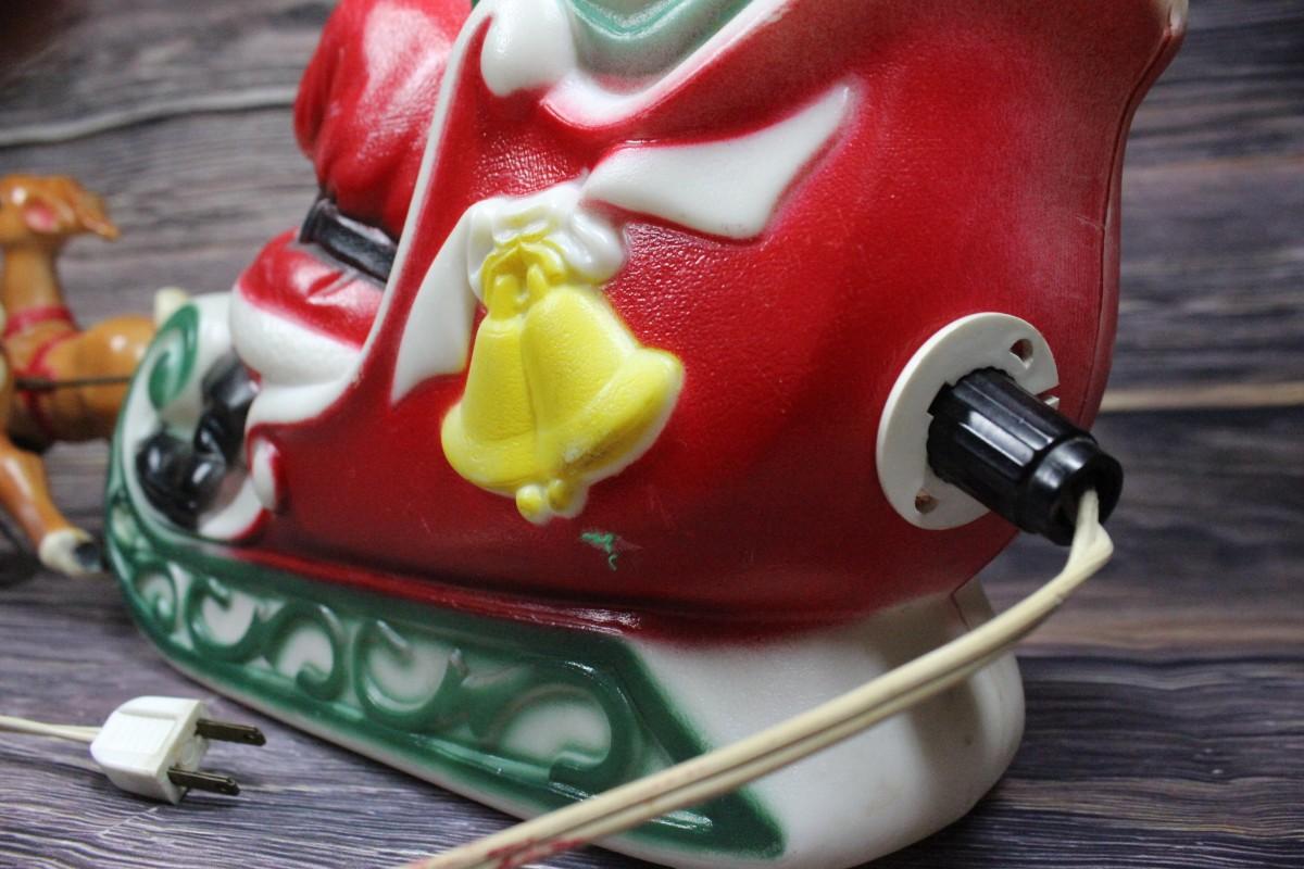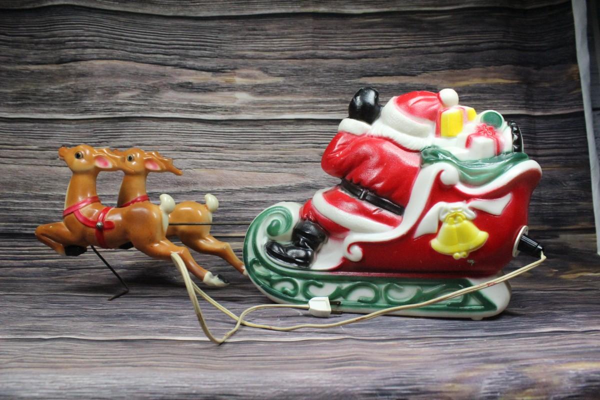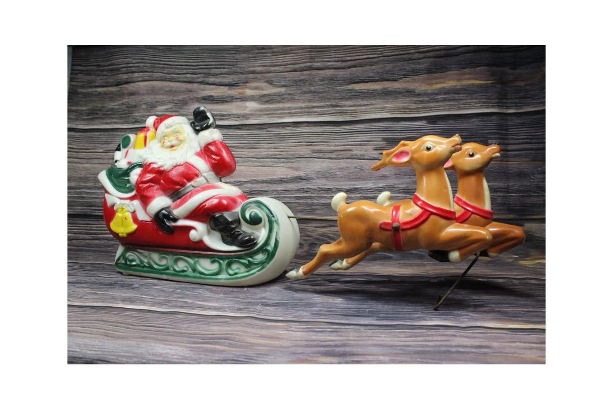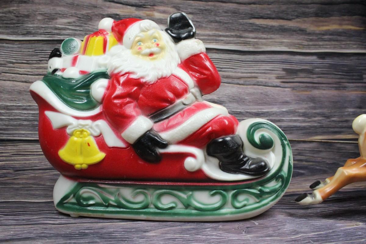Vintage Empire Plastics Corp Santa and Reindeer Light Up Outdoor Decoration, there's no significant damage to the decoration and is in good vintage condition. Check pictures for more details and for sizing. Has not been tested.