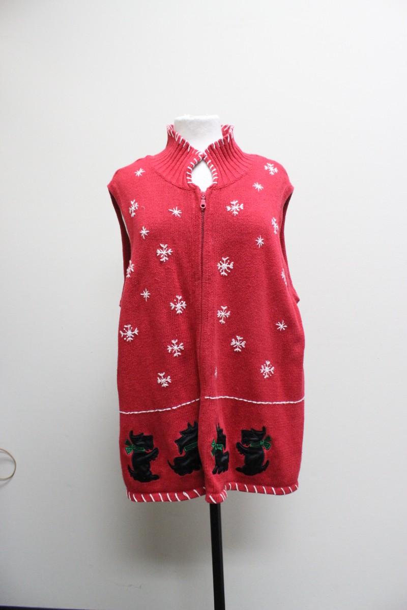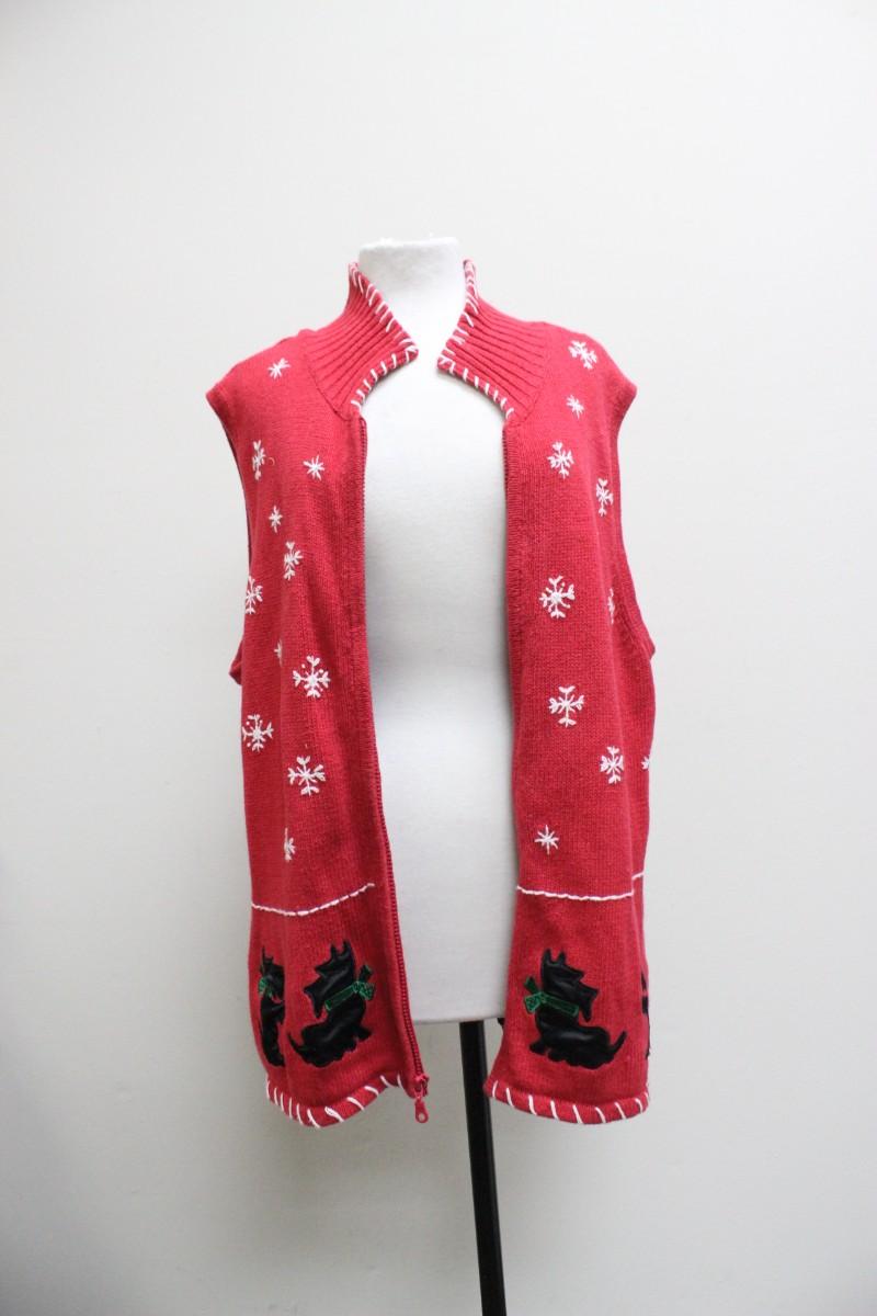 Blair Womens XL Sleeveless Christmas Dog Sweater, there are no rips or tears to the sweater and is in good vintage condition. Check pictures for more details.