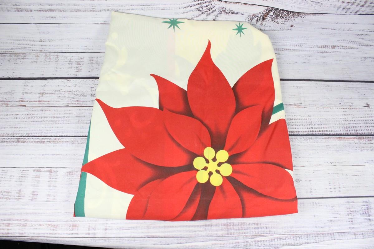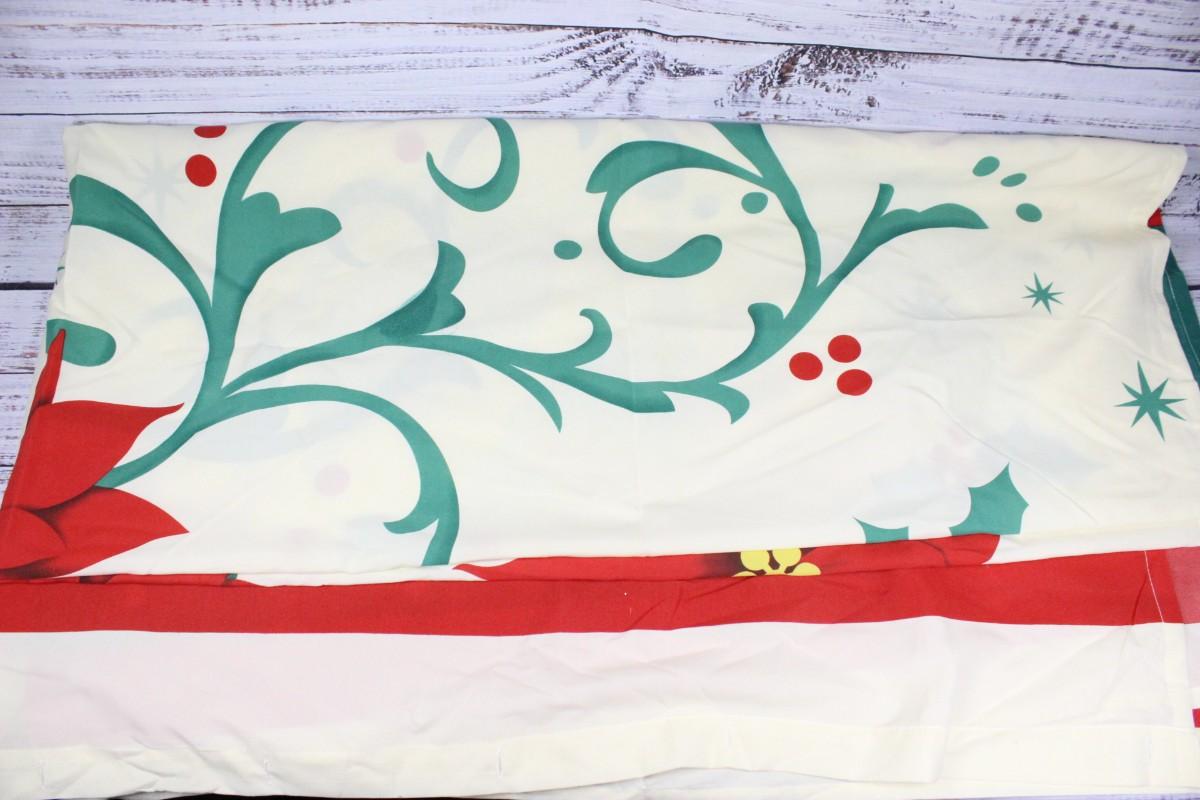 Christmas Poinsettia Large Tablecloth, there are no rips or tears to the tablecloth and is in good useable condition. Check pictures for more details.