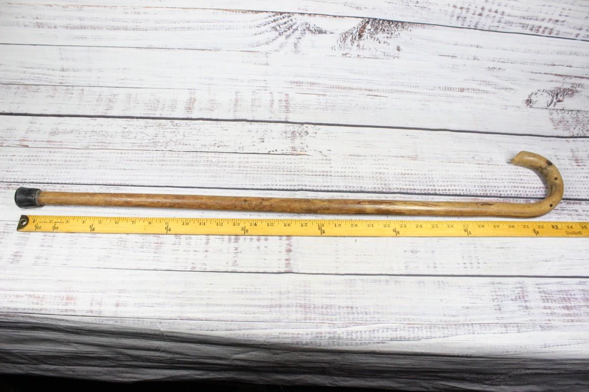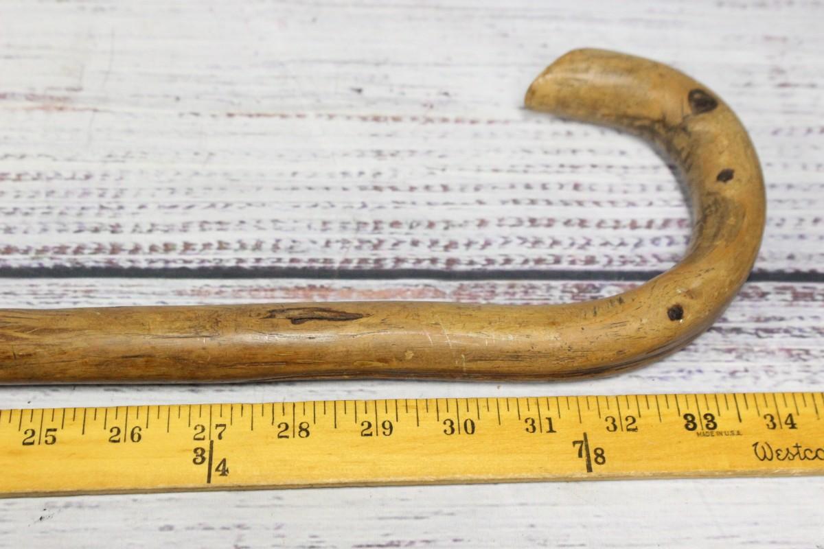 Vintage Wood Walking Cane, there's no significant chips or cracks to the cane and is in good vintage condition. Check pictures for more details and for sizing.