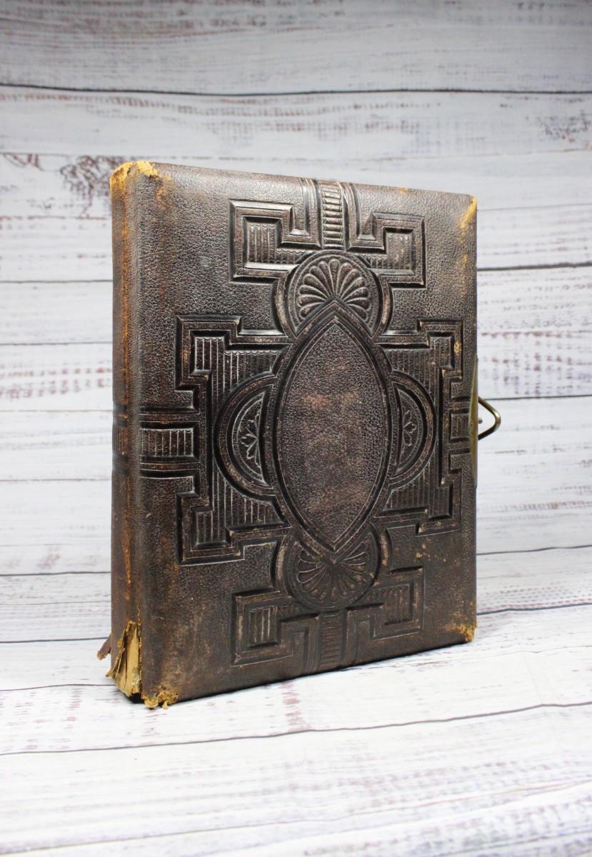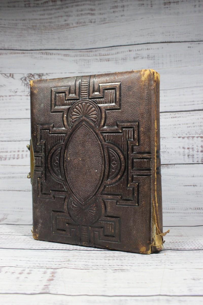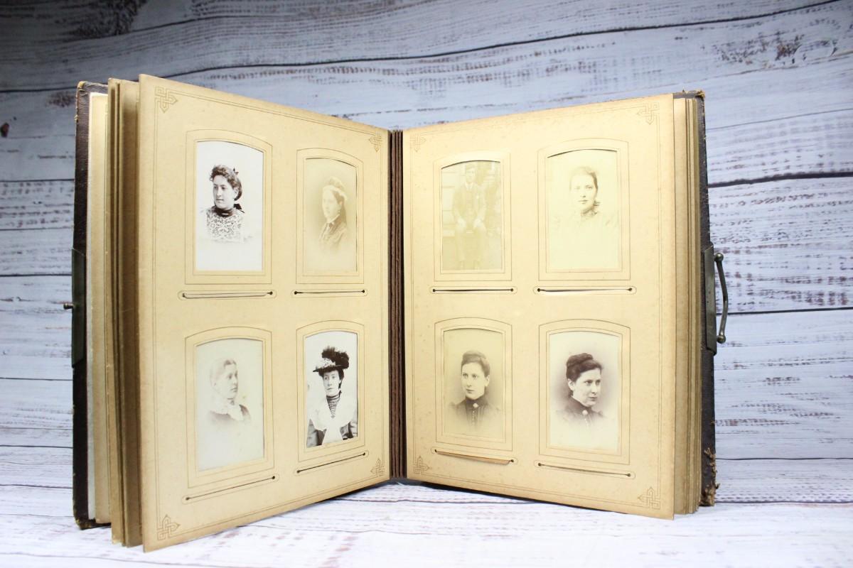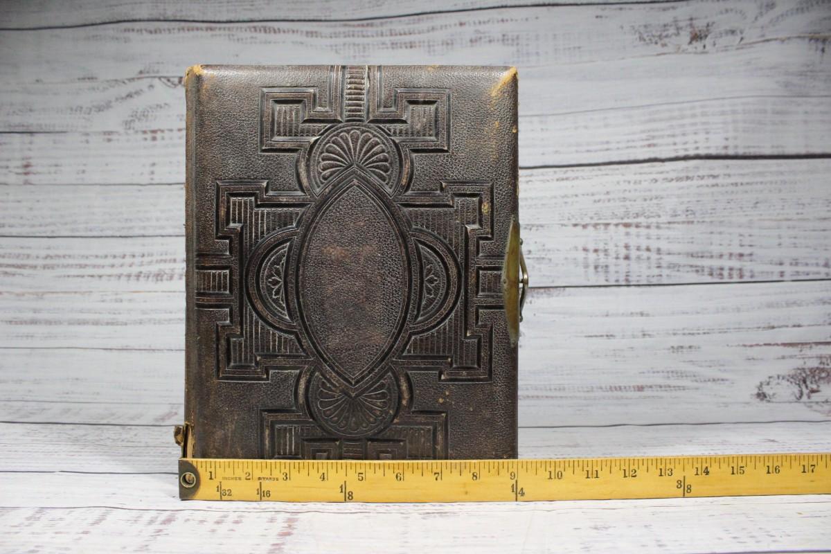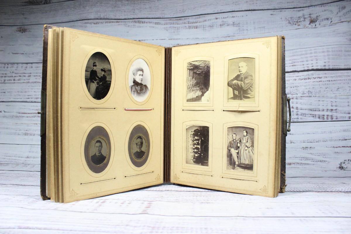 Antique Leather Photo Album Filled with Antique 19th Century Photograph Family Portraits & More