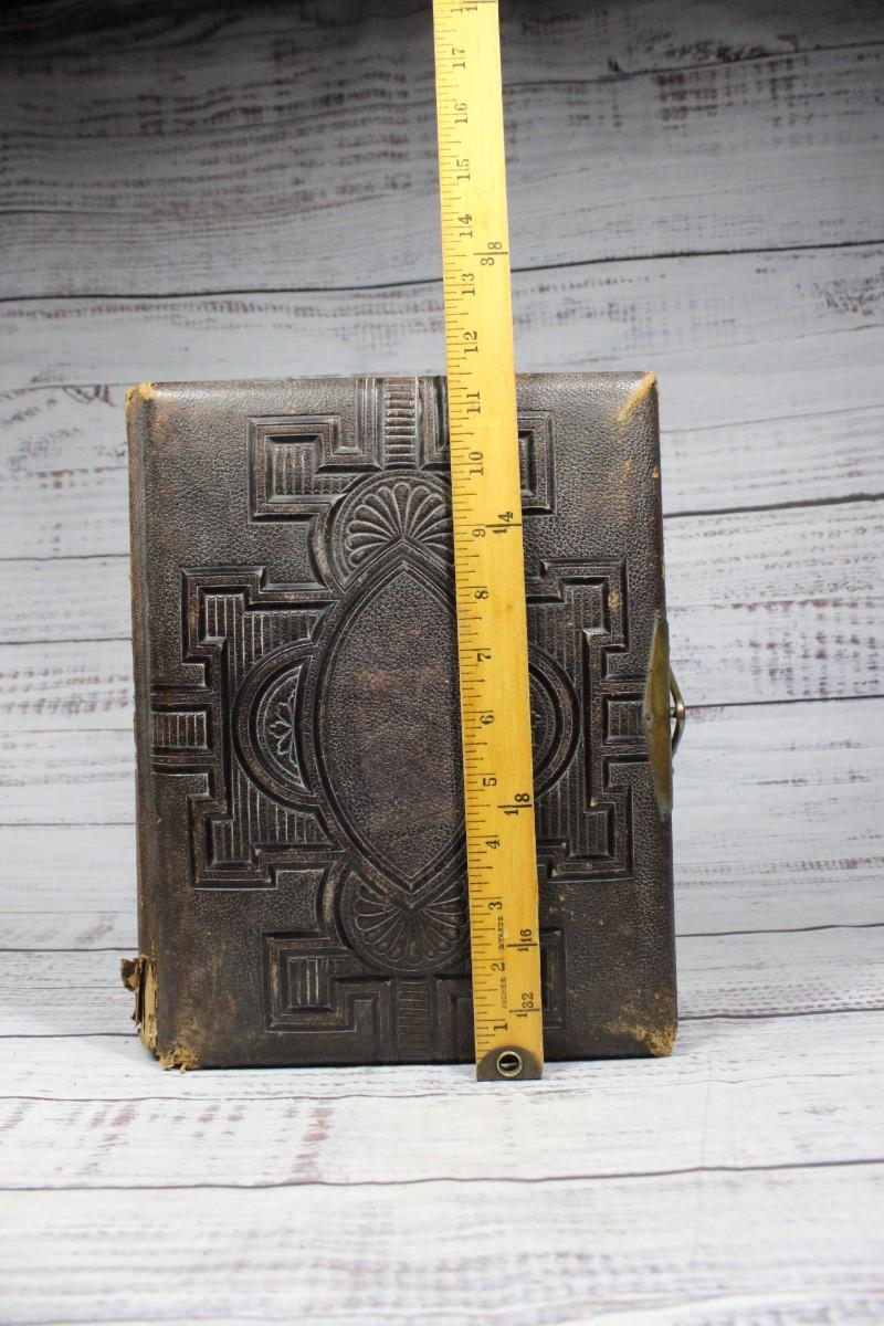 Antique Leather Cover Photo Album Filled with Antique 19th Century Photograph Family Portraits & More, there is some natural vintage wear on the binding, but overall is in good vintage condition. Some photo pages have been ripped out, but the remaining pages are filled with photos. Check pictures for more details and for sizing.