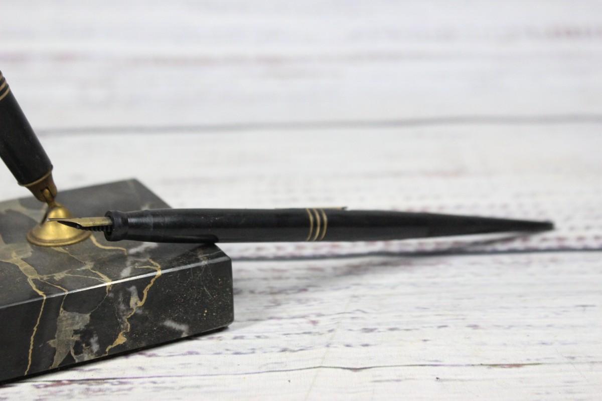 Vintage Mabie Todd & Co. Swan Desk Fountain Pen Set, comes with the fountain pen and the desktop stand. There's no significant damage and is in good vintage condition.