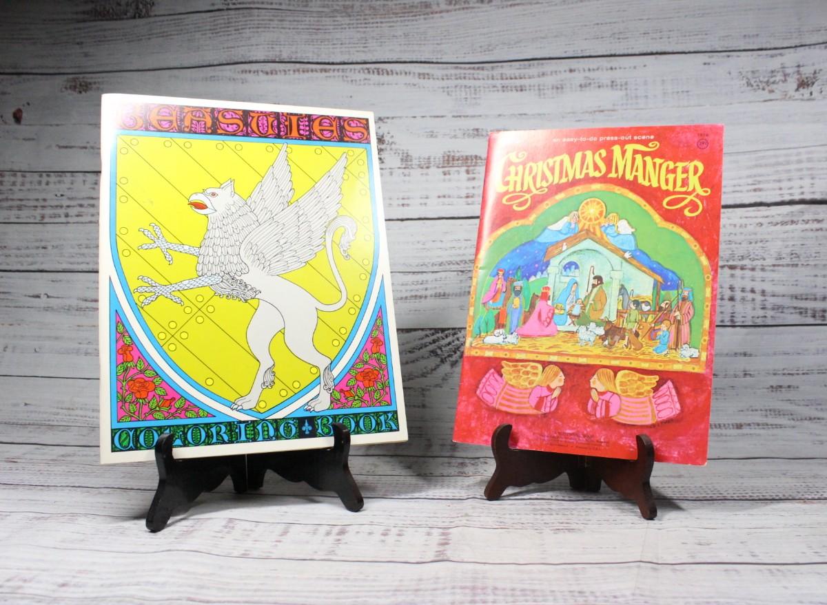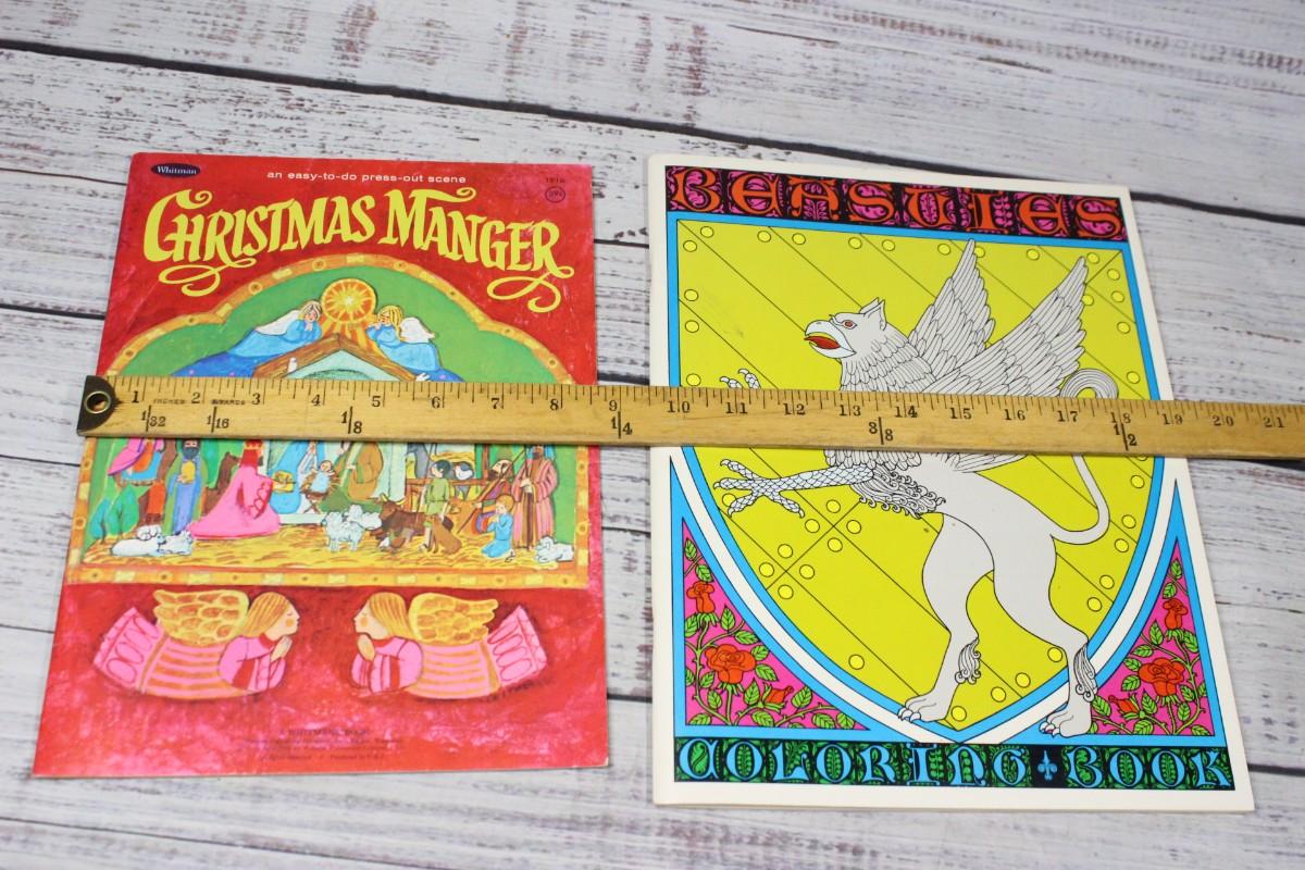Vintage Pair of Never Used Crafting & Coloring Books, Beasties coloring book and Christmas Manger pop out crafting book both never used and is in almost new condition. Check pictures for more details and for sizing.