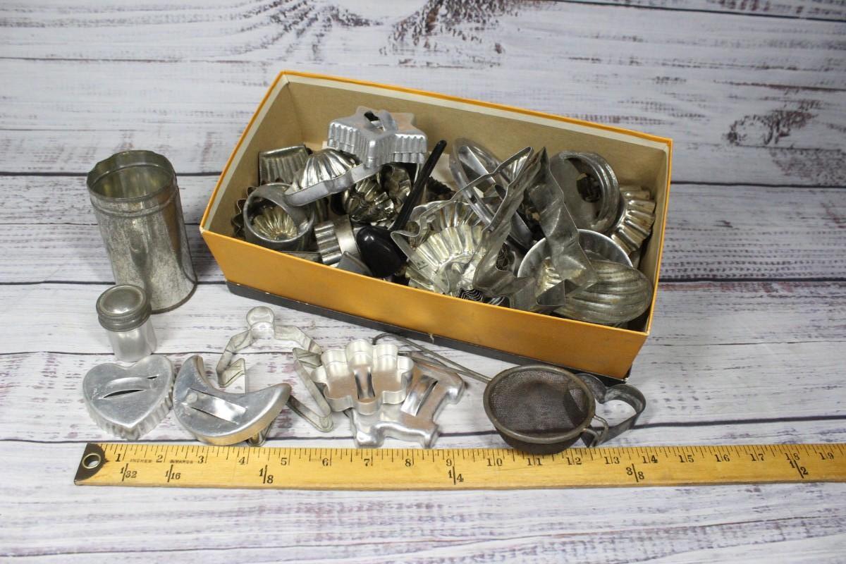 Vintage Lot of Metal Baking Cookie Cutter Shapes & More
