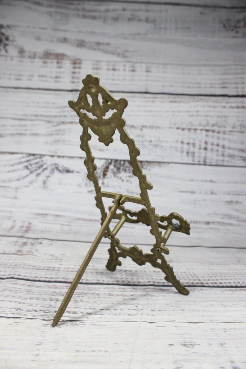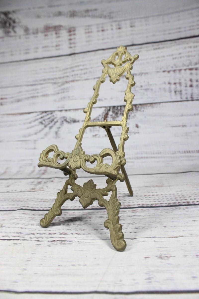 Vintage Metal Photo Tabletop Easel, there's no significant damage to the piece and is in good condition. Check pictures for more details and for sizing.