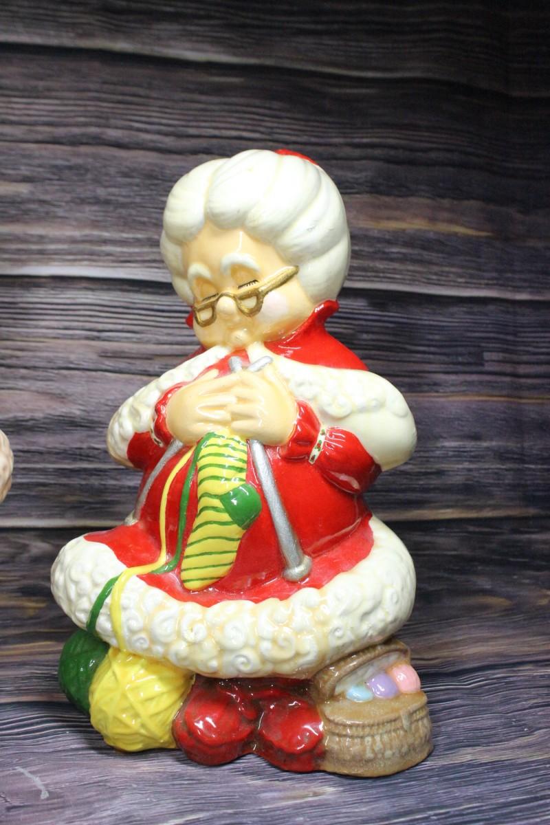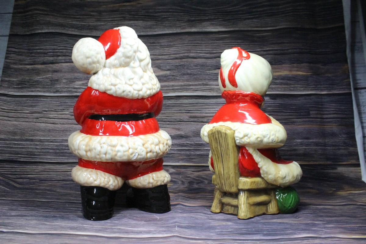 Pair of Vintage Atlantic Mold Hand Painted Ceramic Santa Claus & Mrs. Claus Christmas Decor, there is some light chipping on the back of the Santa Clause statue, check pictures above for more details and for sizing. There is no other significant chips or cracks to the piece and is in good vintage condition.