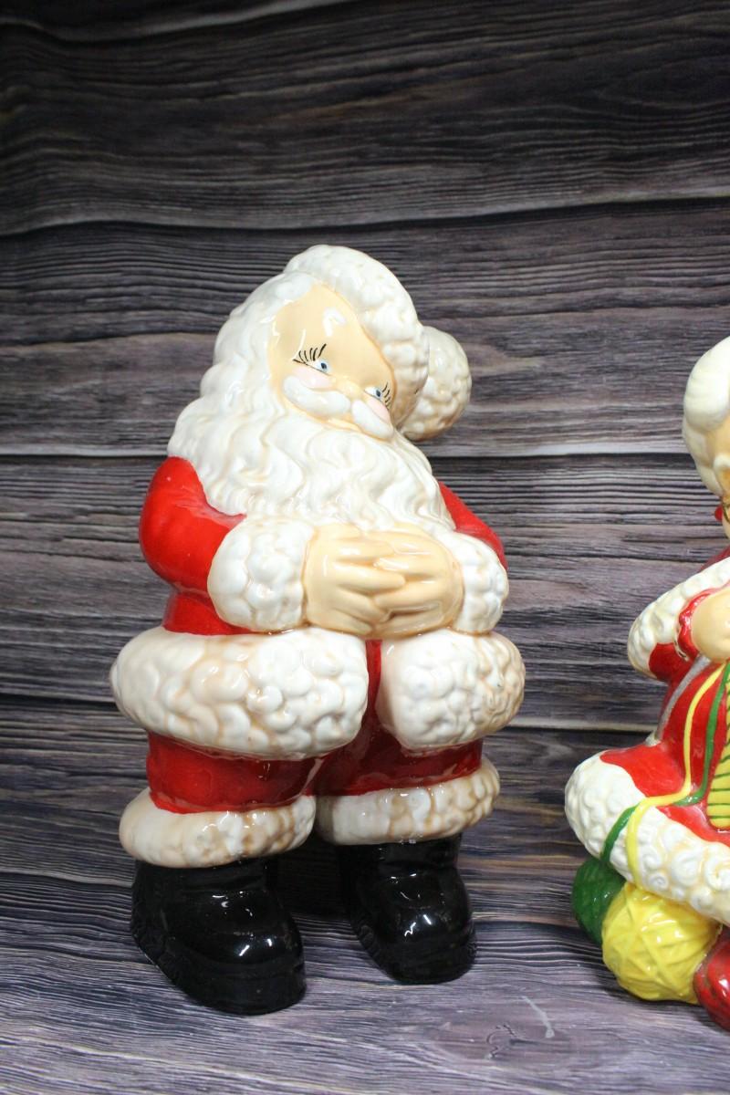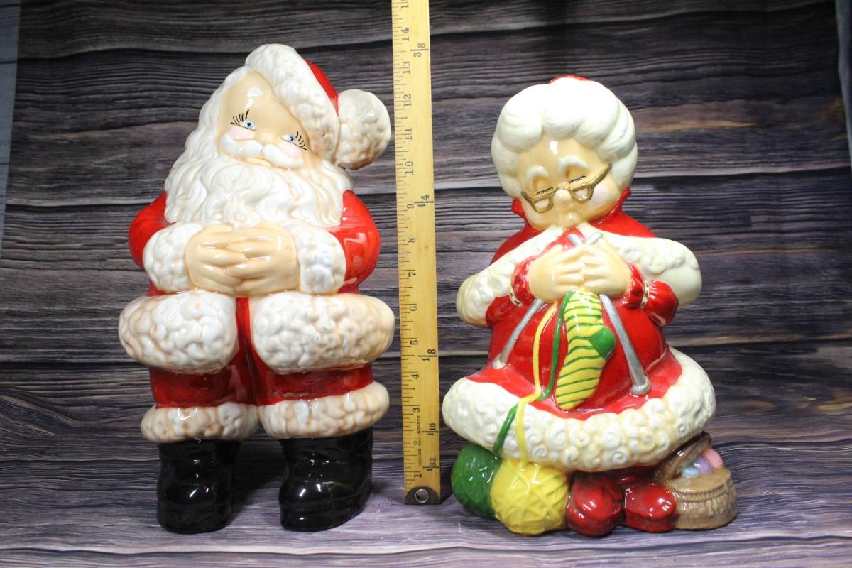 Pair of Vintage Atlantic Mold Hand Painted Ceramic Santa Claus & Mrs. Claus Christmas Decor
