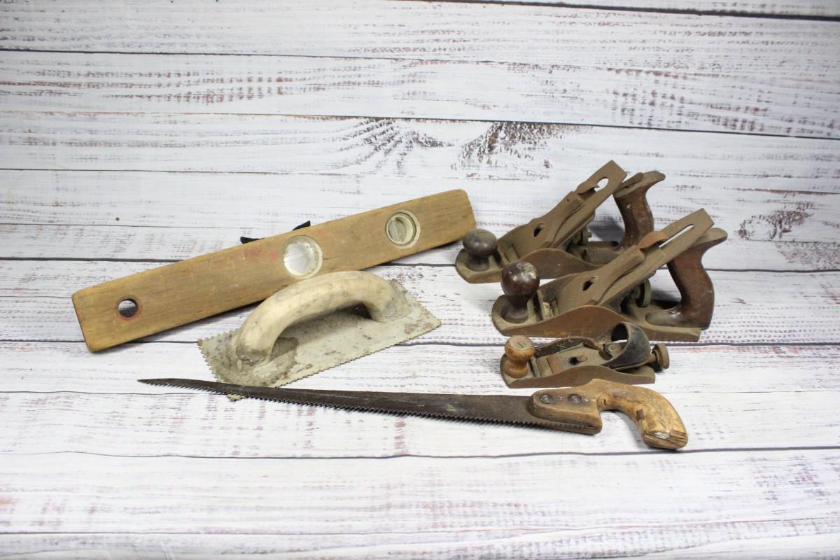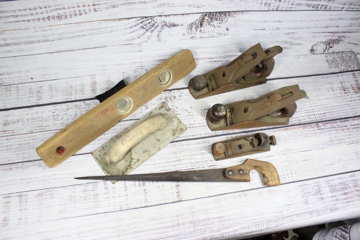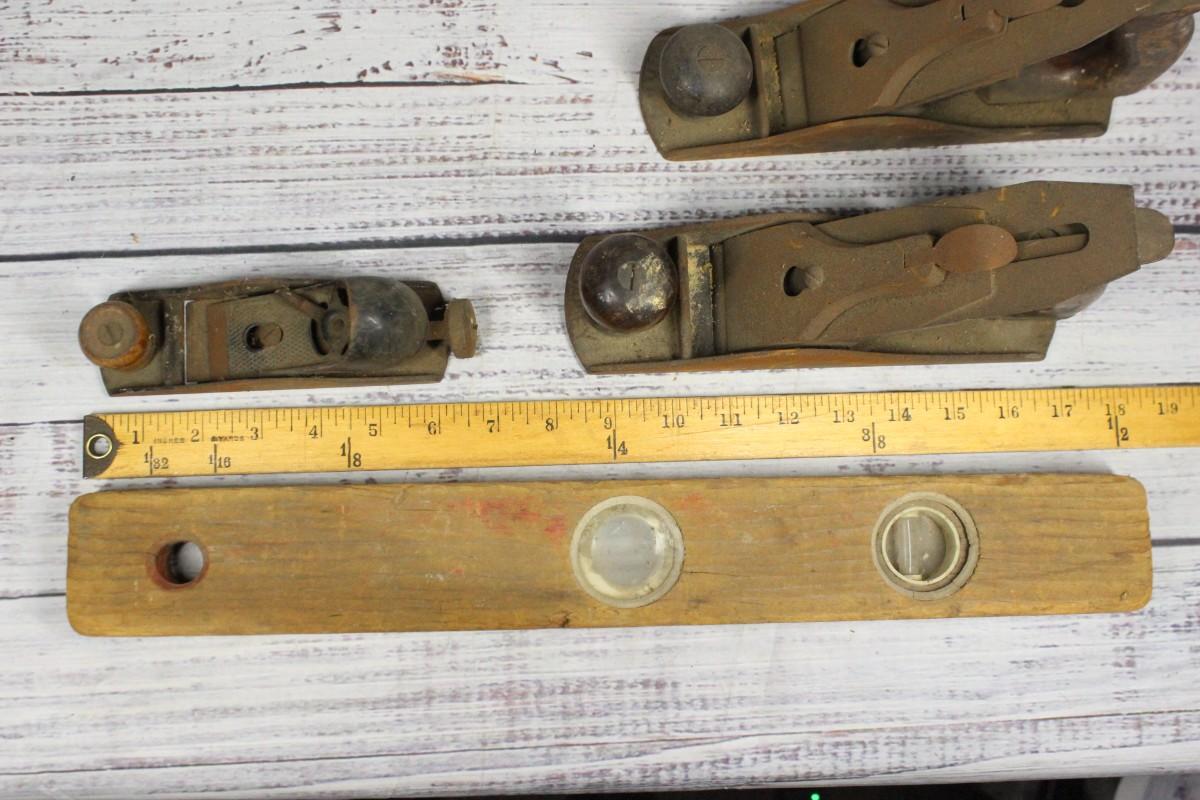 Lot of Carpentry Tools, Saws, Level, & More, there's no significant damage to any of the tools. The level has the fluid missing for one of the gauges, check pictures for more details and for sizing.