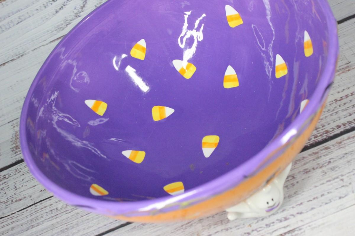 Ghosts and Bats Ceramic Halloween Candy Bowl, there's no cracks or chips to the piece and is in good condition. Check pictures for more details and for sizing.