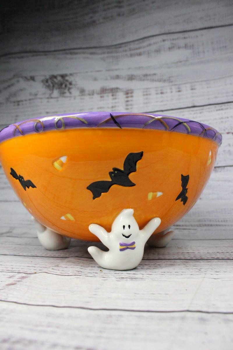 Ghosts and Bats Ceramic Halloween Candy Bowl