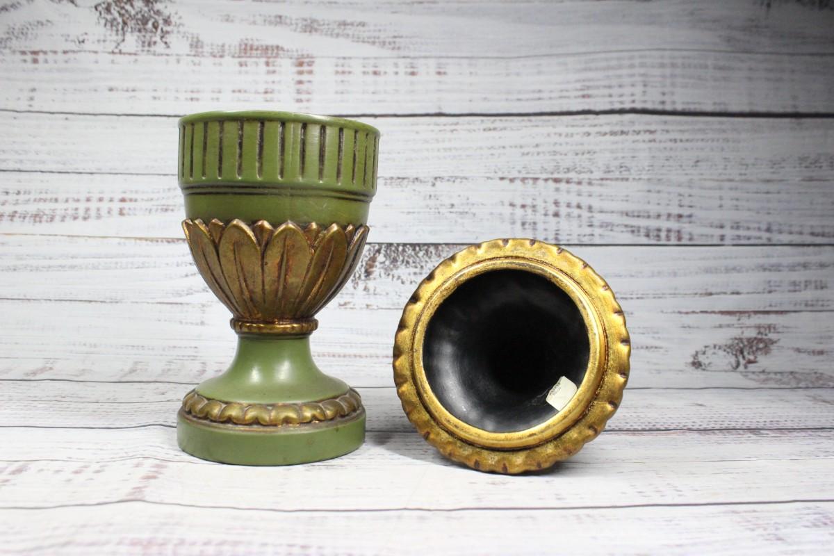 Vintage Ceramic Decorative Green Gold Vessel Urn