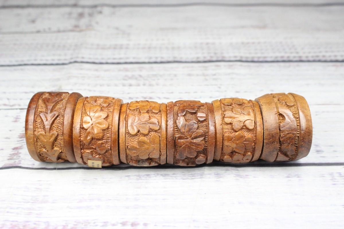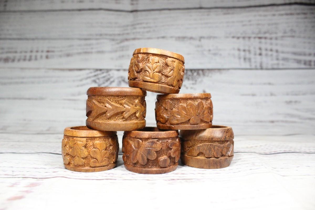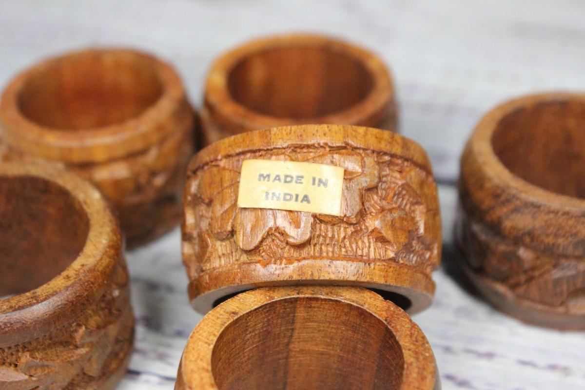 Lot of Vintage Made in India Wooden Napkin Holders, there are no cracks or chips to any of the pieces and is in good useable condition. Check pictures for more details and for sizing.