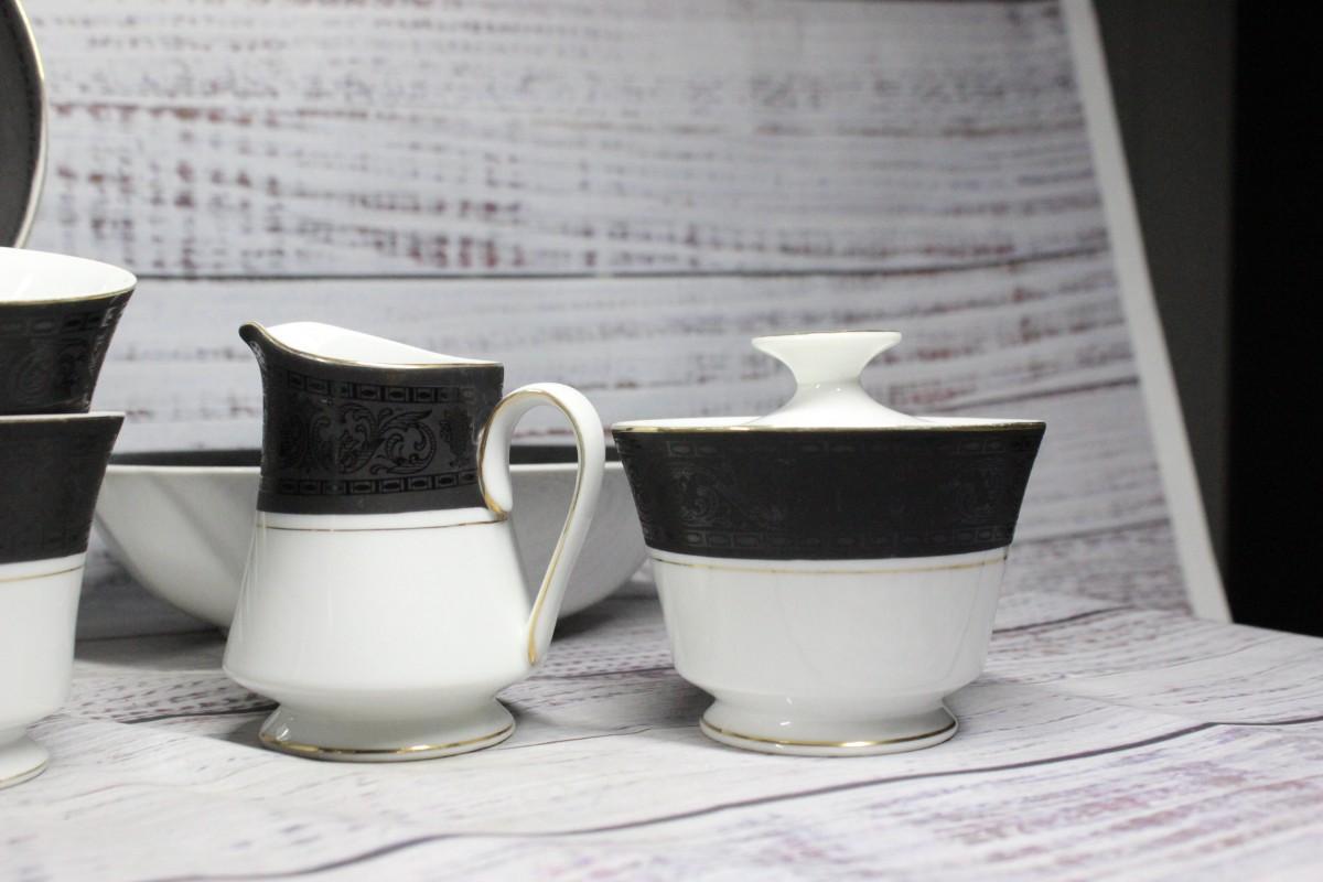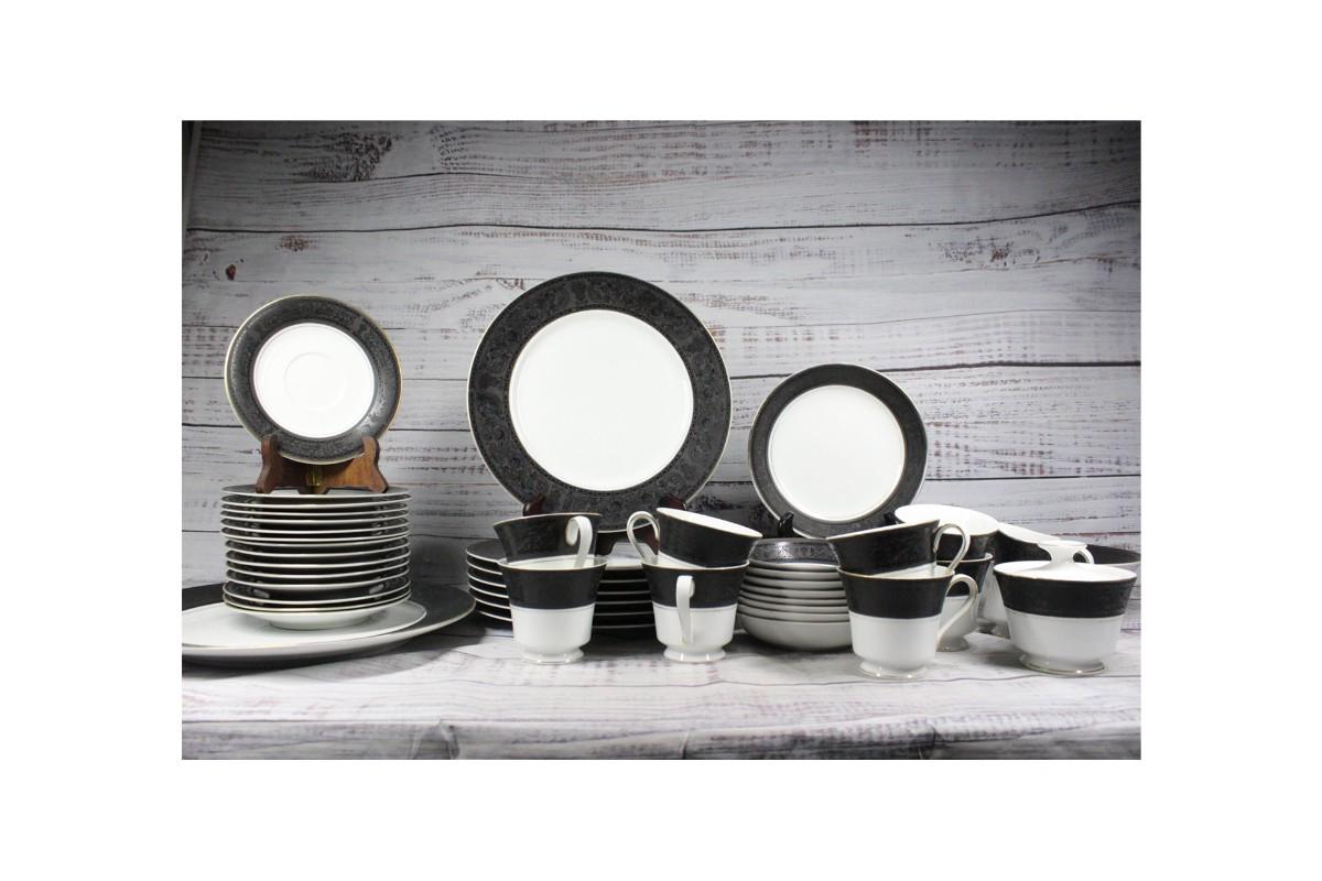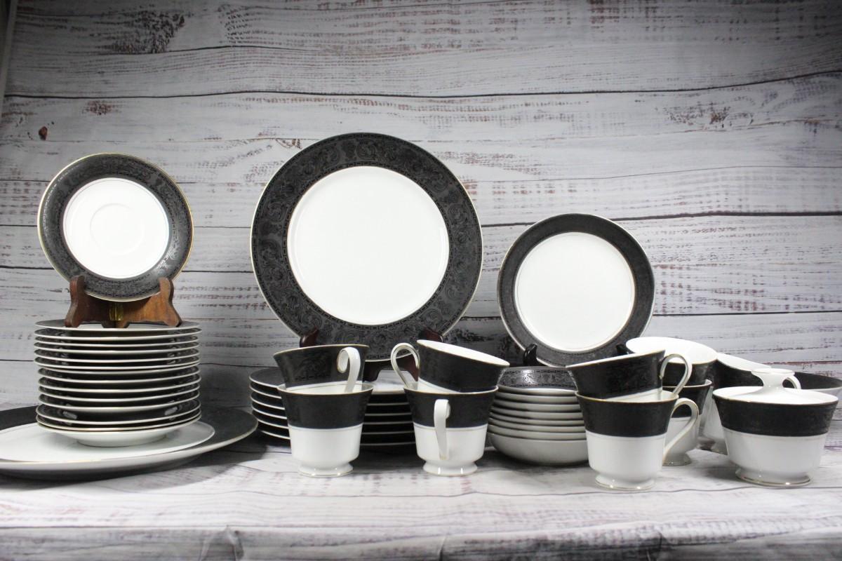 Large set of Mikasa China in Ambassador. Black on Black design. Includes