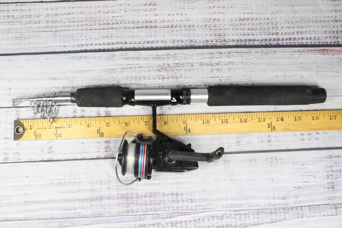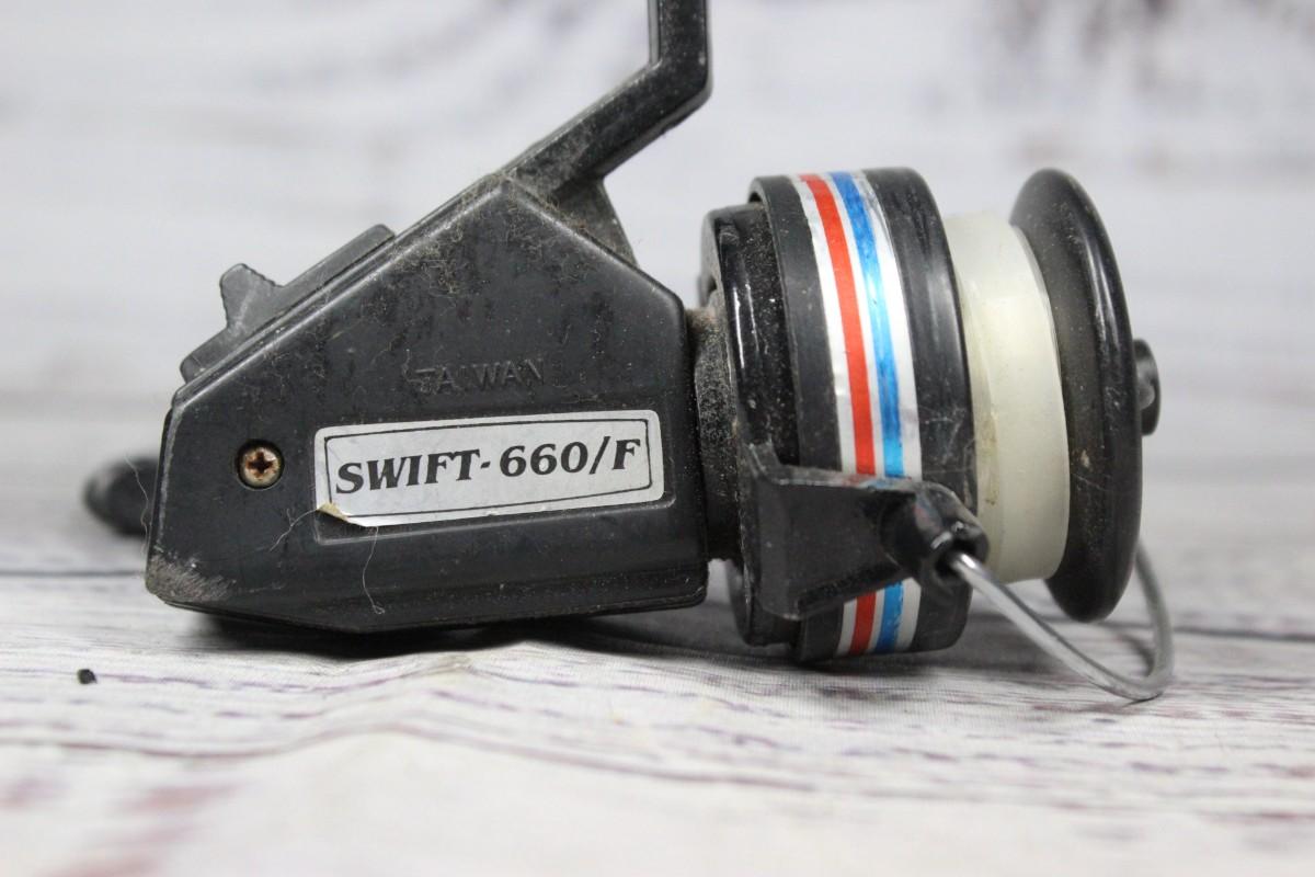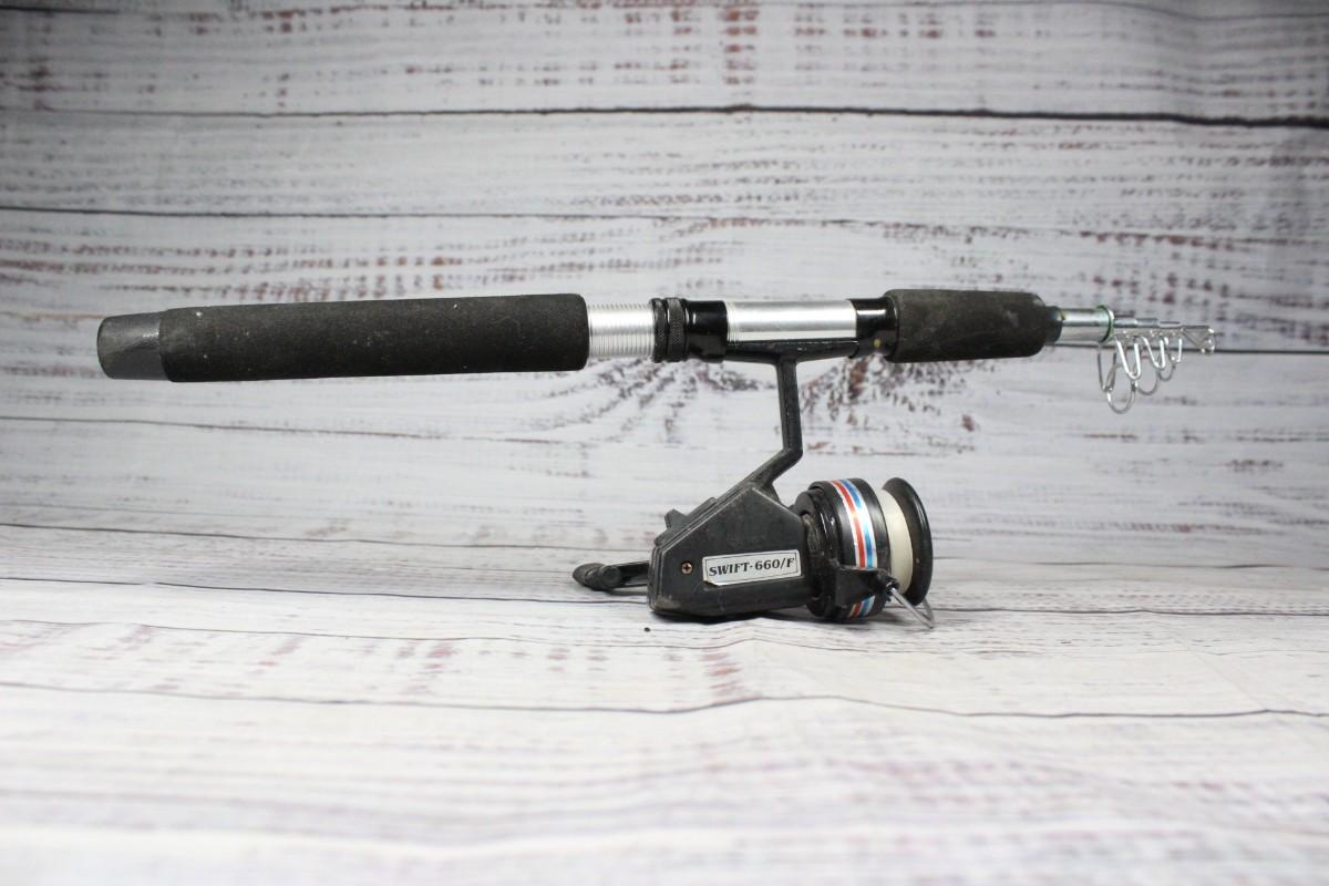 Vintage Swift 660/F Telescoping Spin Fishing Rod, there's no significant damage to the rod and is in fair vintage condition. The reel is a little hard to turn. The rod is 66 inches from base to tip and telescopes down to 16 inches, check pictures for more details.