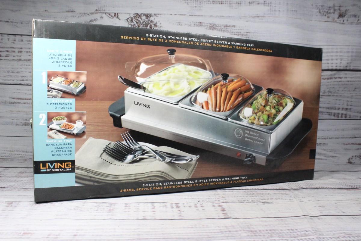 3 Station Stainless Steel Buffet Server & Warming Tray NEW