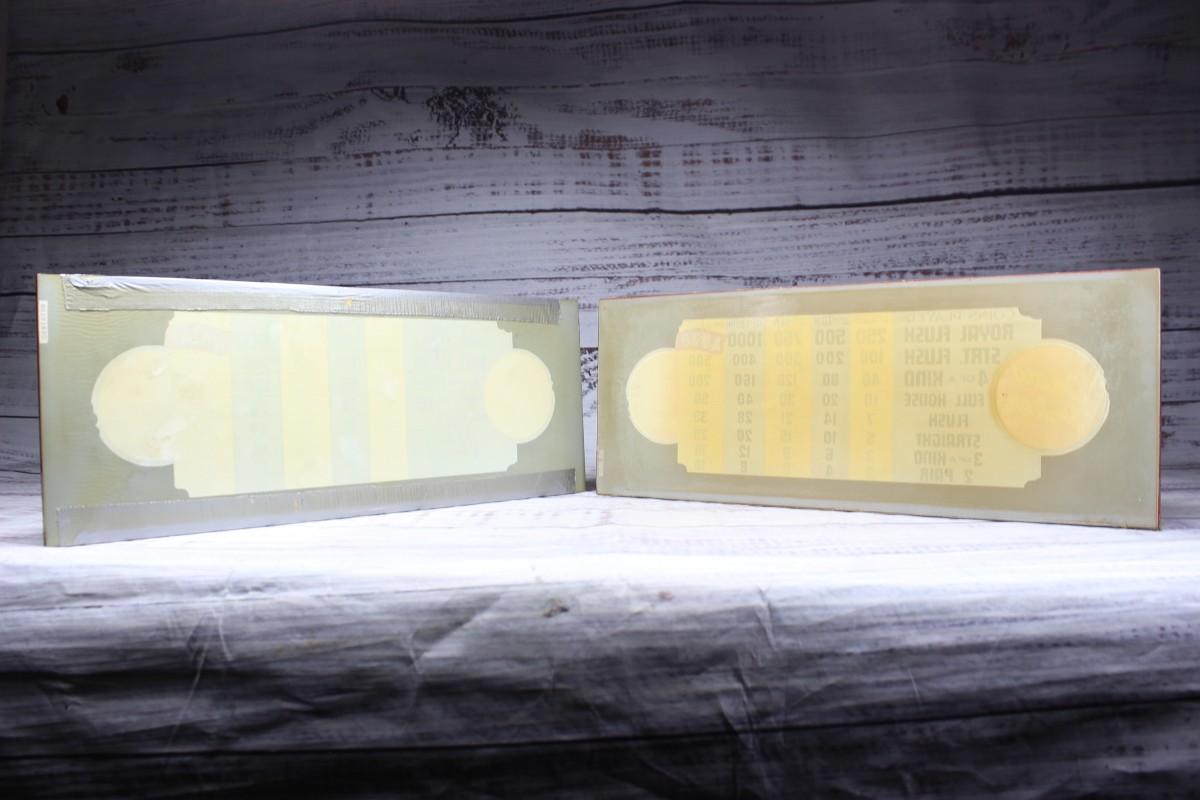 Pair of Vintage Retro Draw Poker Slot Machine Glass Panel Inserts