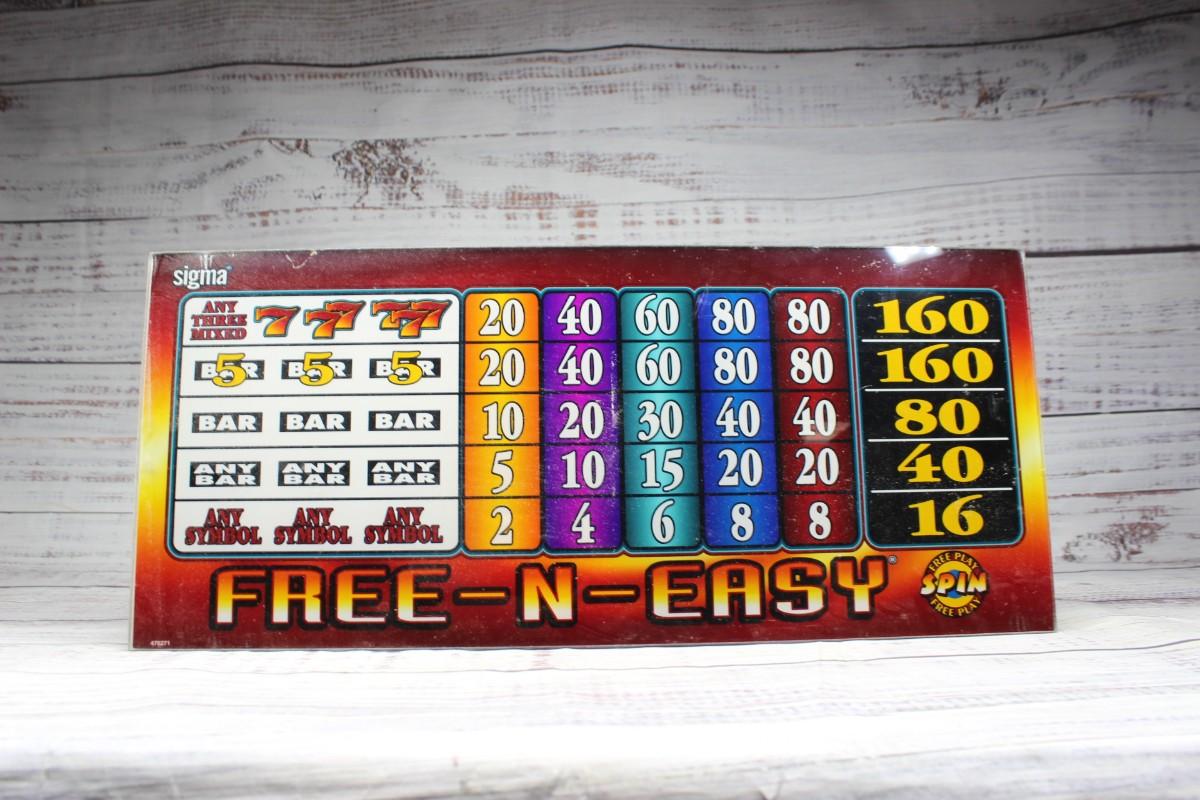 Retro Sigma Game Free N Easy Slot Machine Glass Panel Insert, there's no significant chips or cracks to the piece and is in good condition. Check pictures for more details and for sizing.
