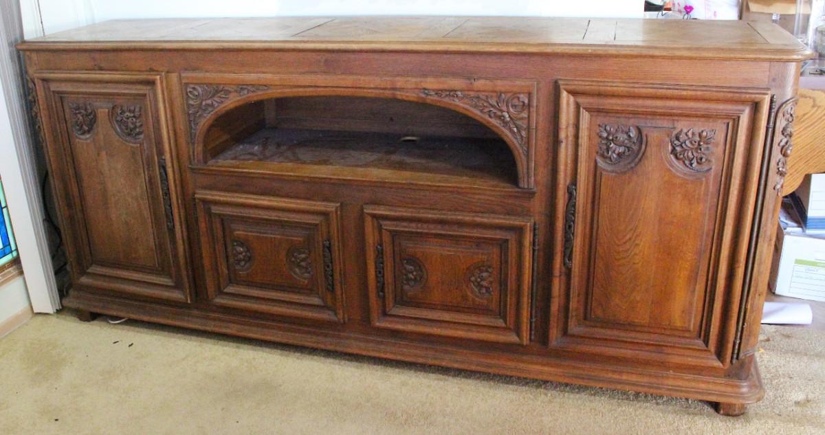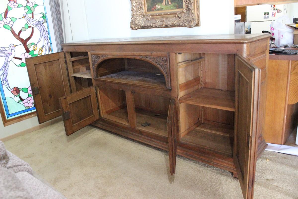 Antique vintage solid wood buffet credenza. Large cabinet with multiple storage spots, Was being used as a media cabinet. Over 5' length. Good condition. LOCAL PICK UP IN FULLERTON.