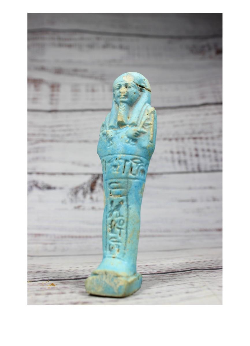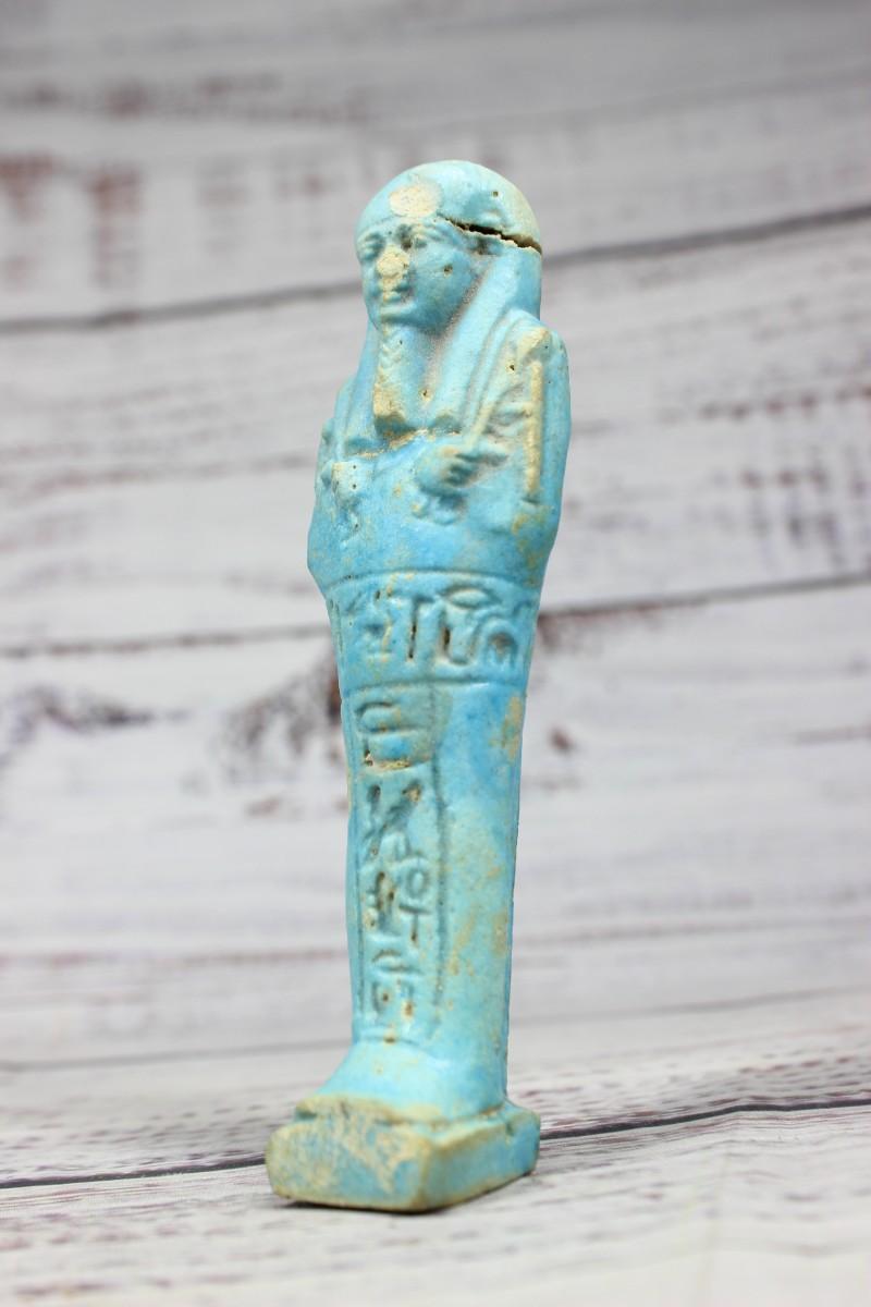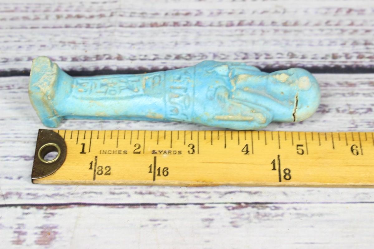 Vintage Mini Blue Statute of Egyptian Faience Shabti Figurine Pharaoh