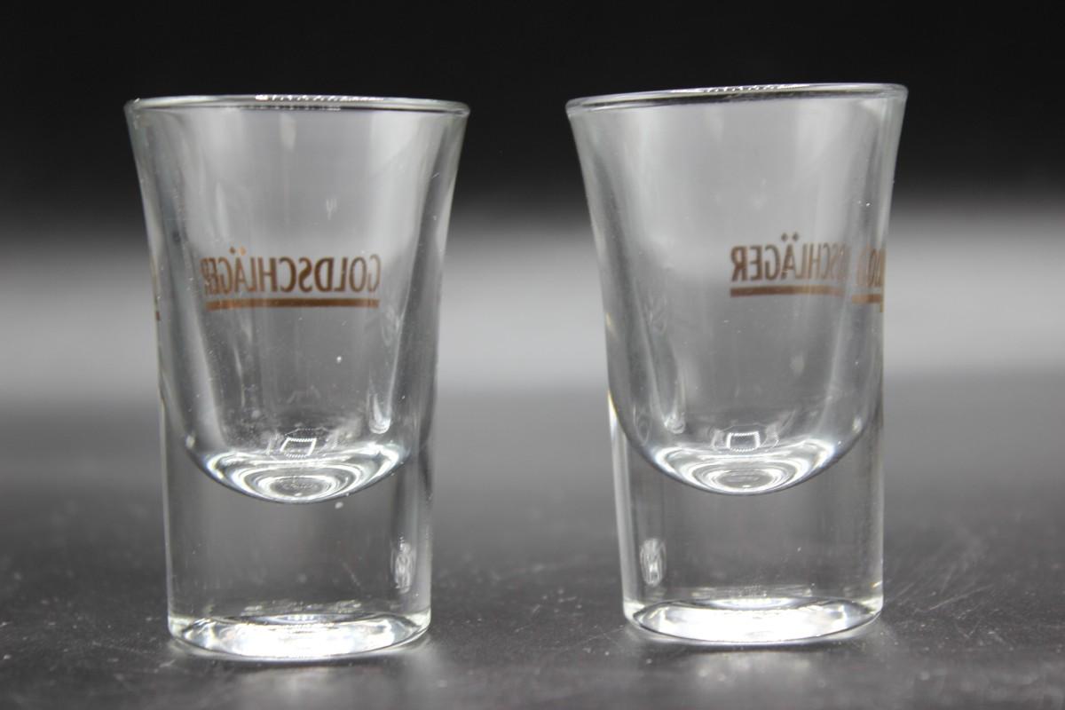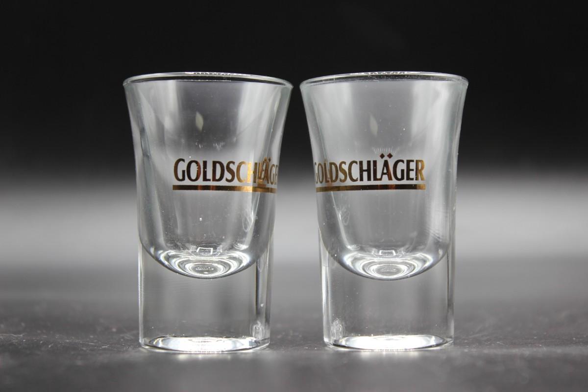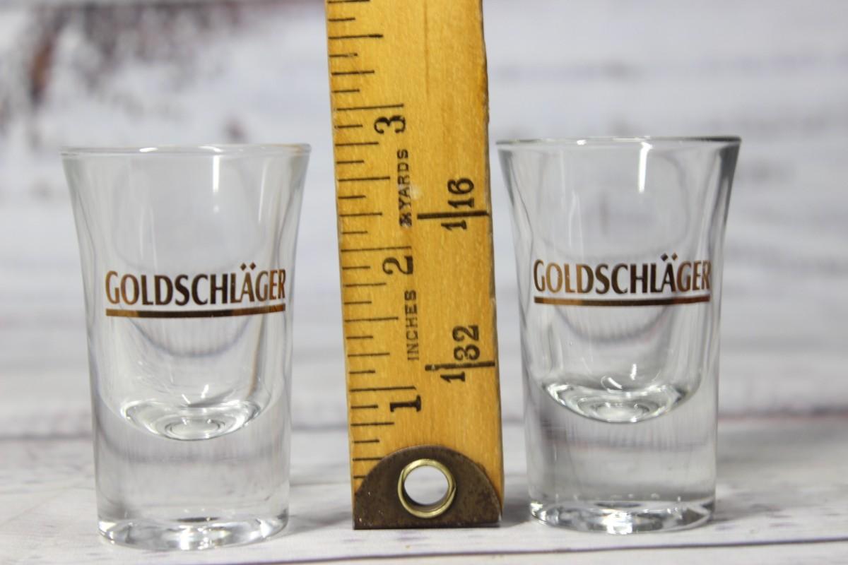 Pair of Vintage Goldschläger Swiss Shot Glasses, there are no cracks or chips to the pieces and is in good useable condition. Check pictures for more details and for sizing.