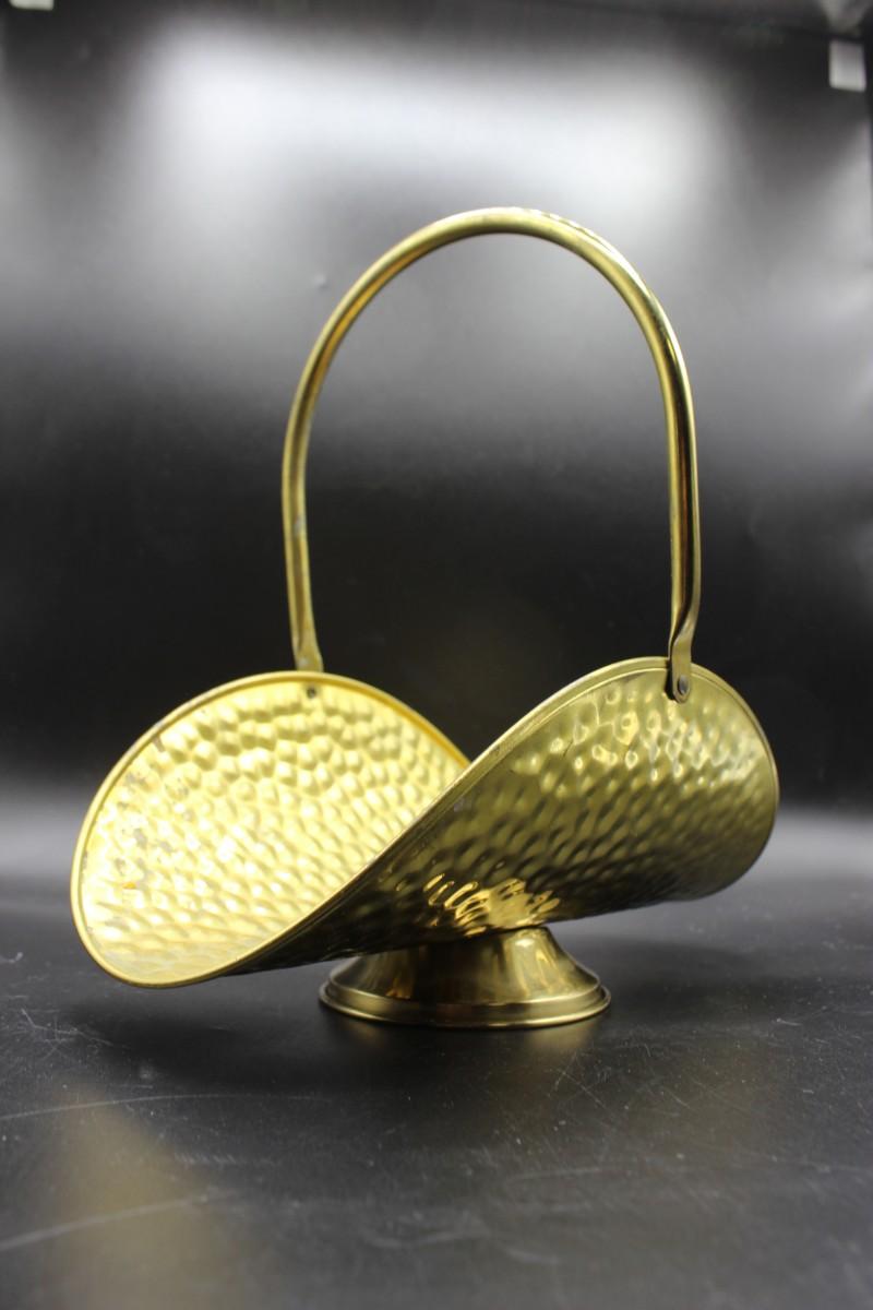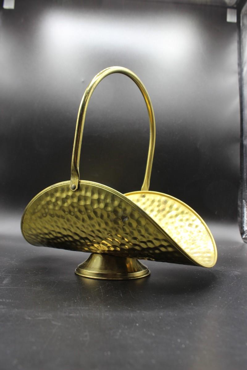 Vintage Made in Holland Hammered Brass Kindling Decorative Basket