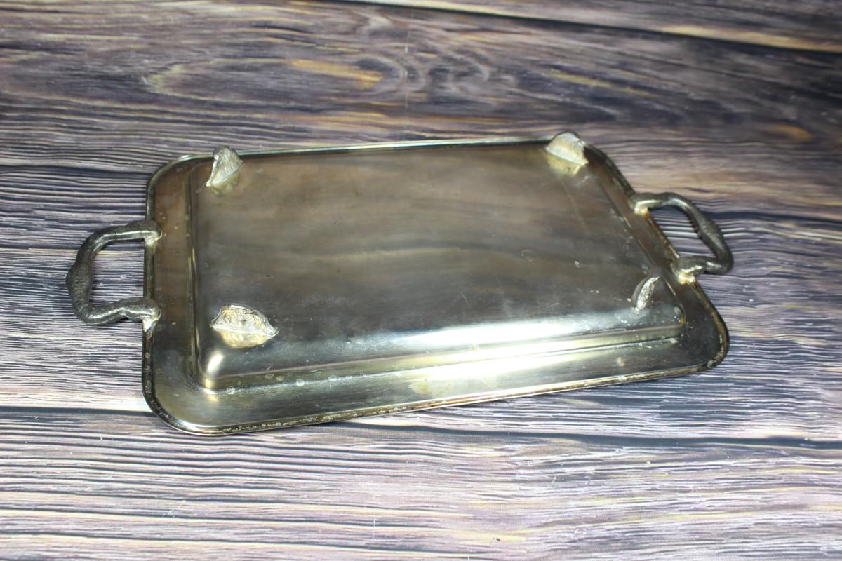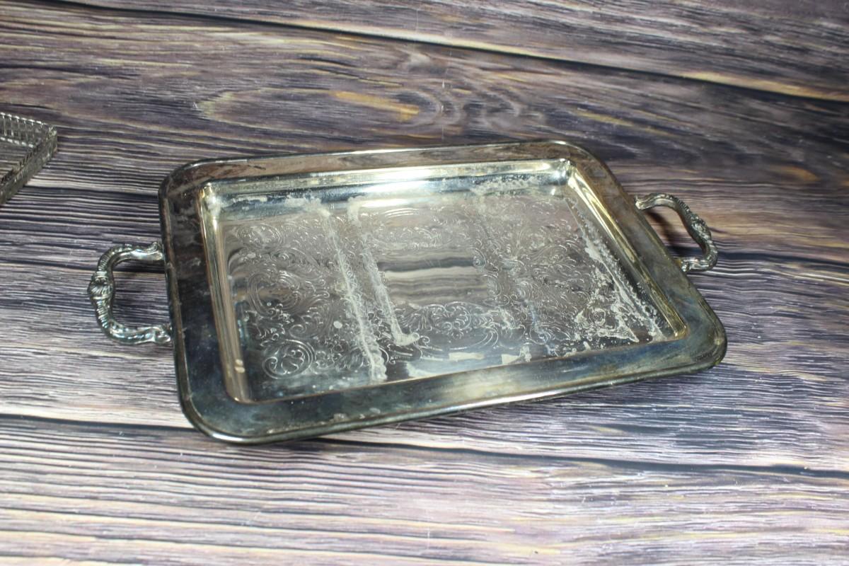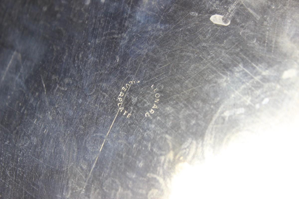 Vintage Leonard Silverplate Tray with 3 Glass Inserts, there are no significant scratches or chips to any of the pieces and is in good vintage condition. Needs to be cleaned, check pictures for more details and for sizing.