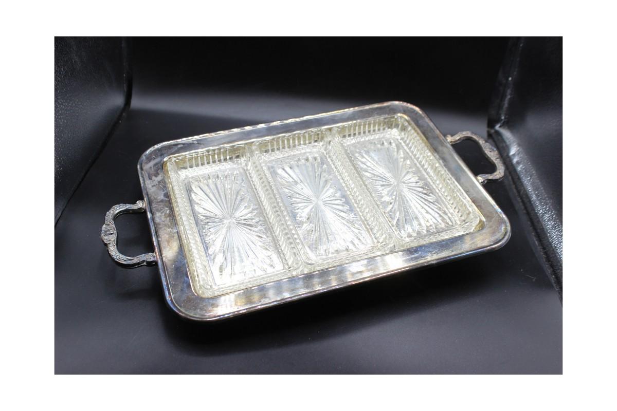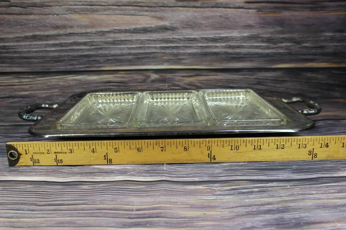 Vintage Leonard Silverplate Tray with 3 Glass Inserts