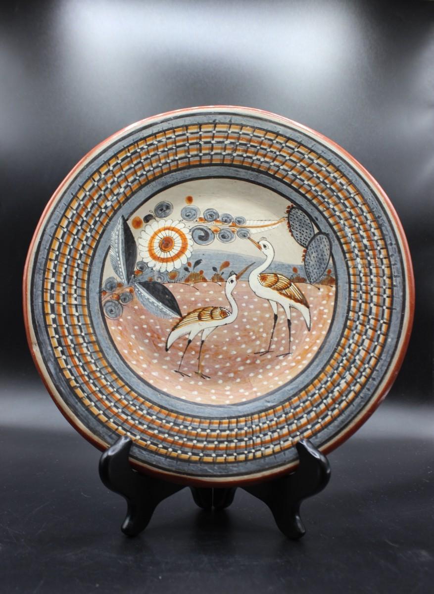 Vintage Mexican Folk Art Nature Birds Cranes Ceramic Pottery Wall Decor
