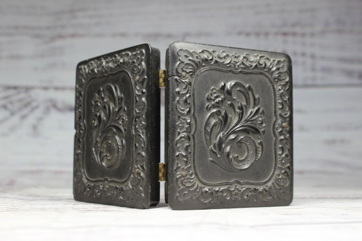 Antique Small Pocket Framed Double Ambrotype of Mother and Children, there is no significant damage to the piece and is in good vintage condition. The clip that holds both sides together works perfectly and still locks into place. The cheeks of the entire family have been painted by hand, check pictures for more details and for sizing.