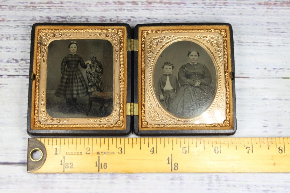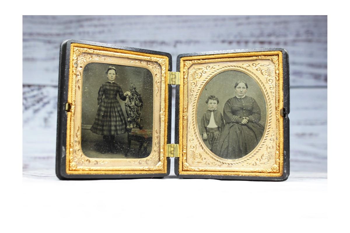Antique Small Pocket Framed Double Ambrotype of Mother and Children