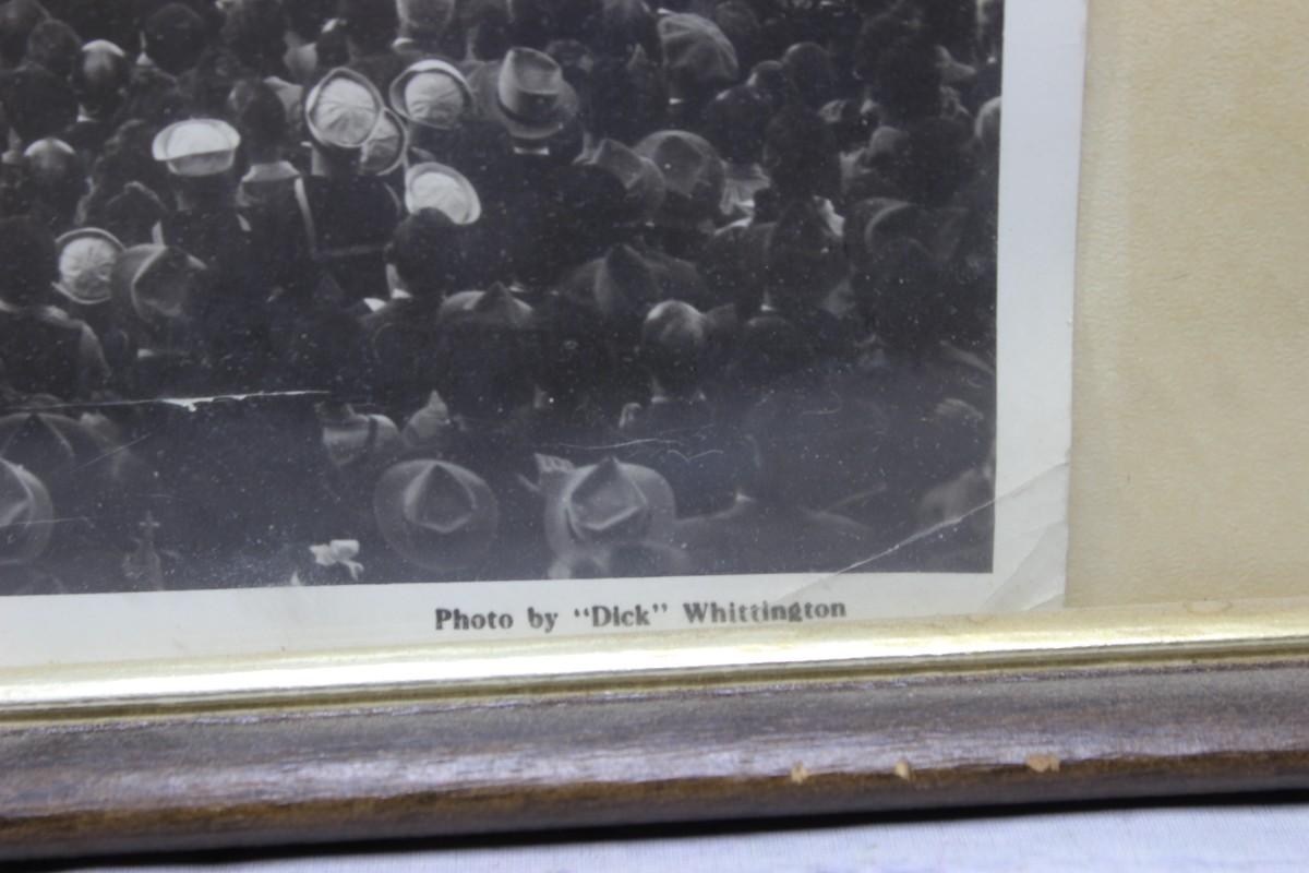 Vintage Framed Dick Whittington Santa Anita Racetrack Photograph, there is no significant damage to the frame or protective glass. The photo is slightly worn, check pictures for more details and for sizing.