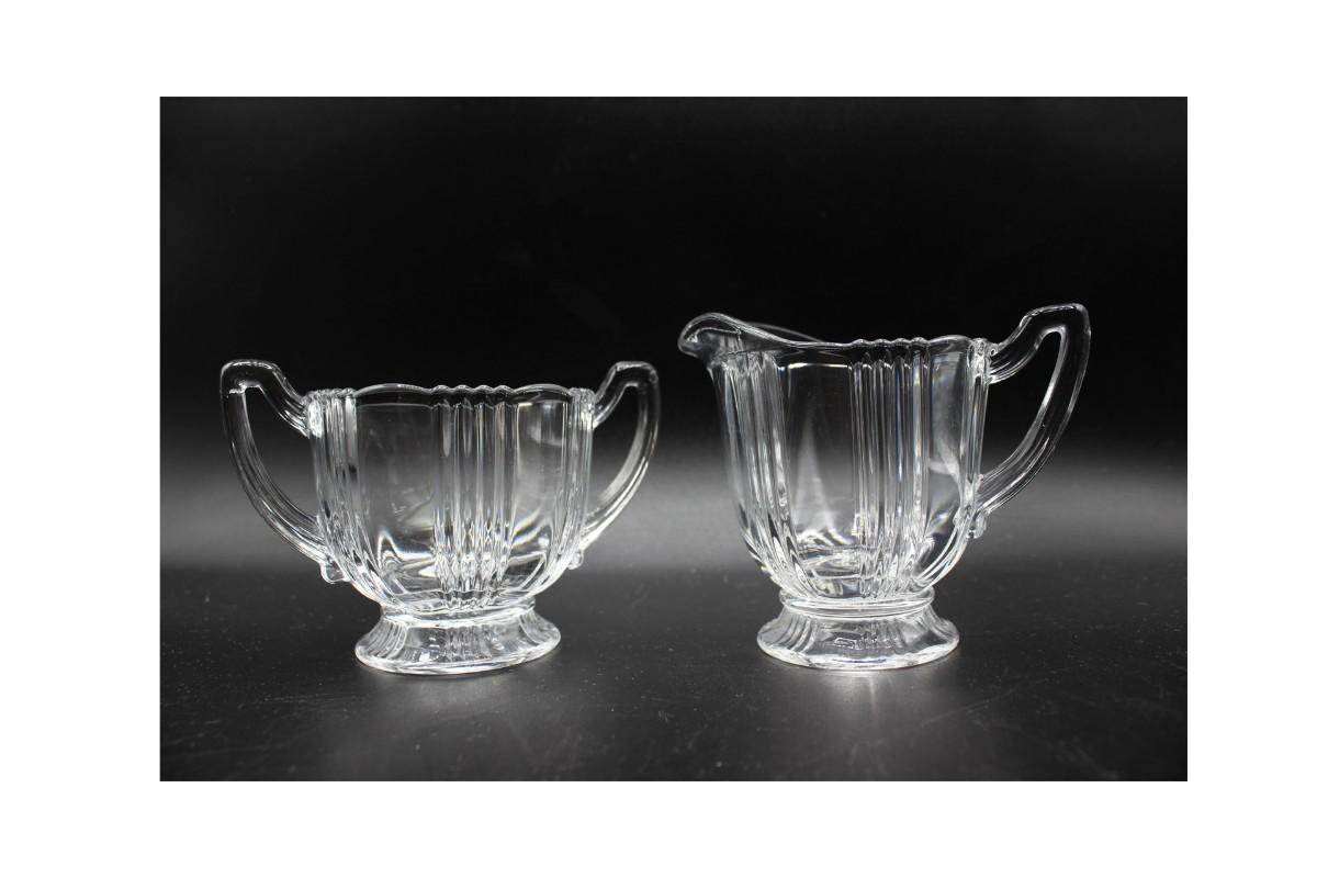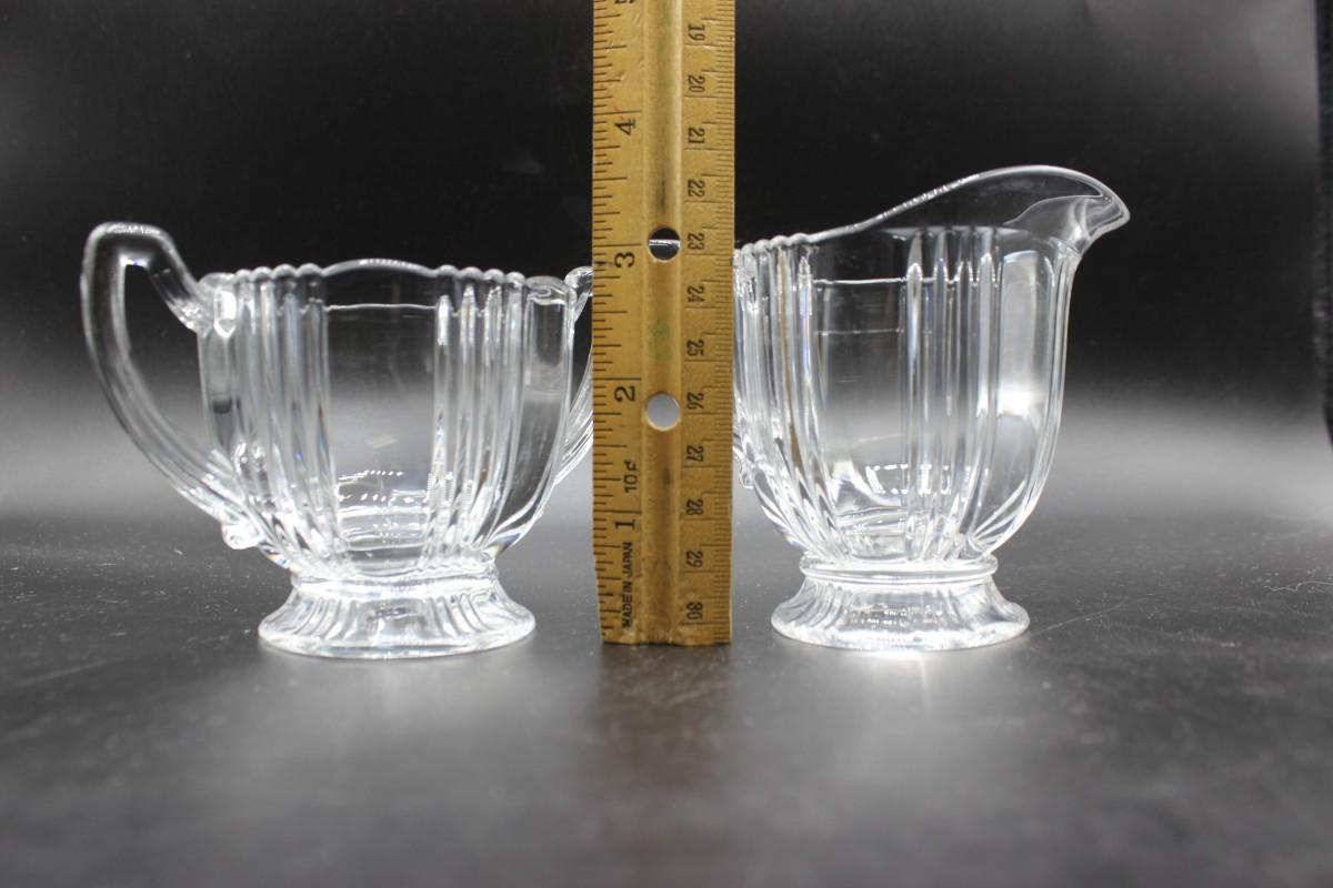 Pair of Vintage Mini Creamer & Open Lid Sugar Tea Glassware by Fostoria