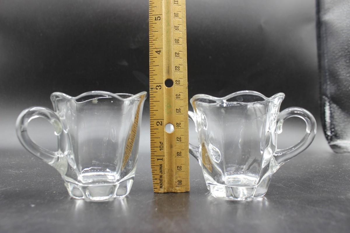 Vintage Clear Fostoria Glass Cream & Sugar Set, there are no cracks or chips to either of the pieces and is in good condition. Check pictures for more details and for sizing.