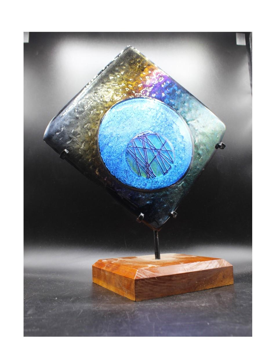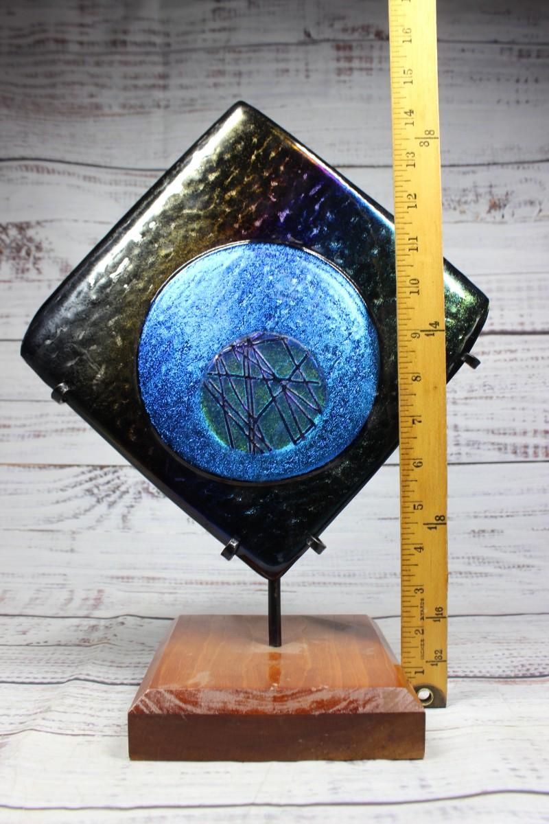 Abstract Square Glass Art Piece with Display Statue. No signature or artist mark. Comes with stand.